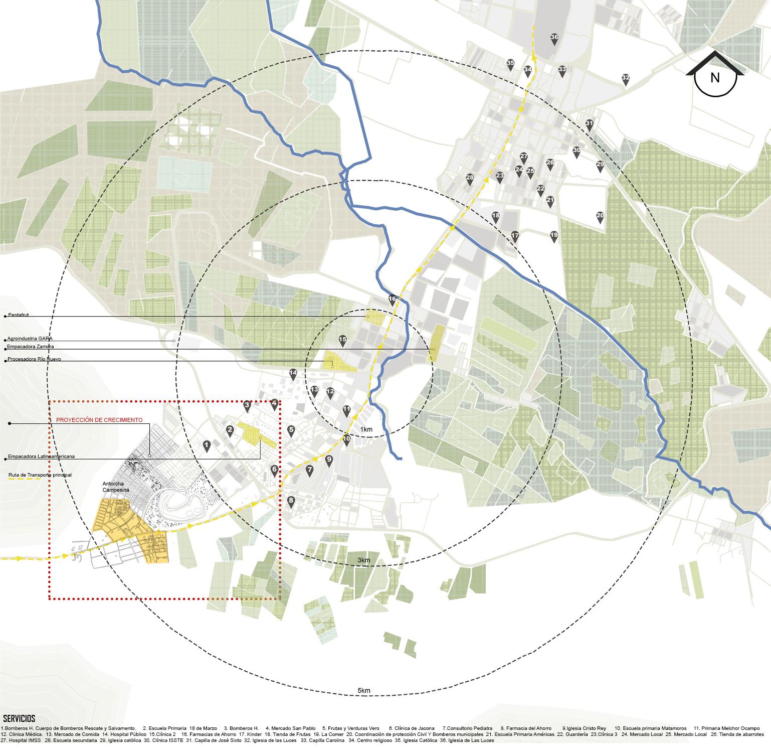 Propuesta urbana con estrategias que une la colonia Antorcha Campesina con la periferia de Jacona.
