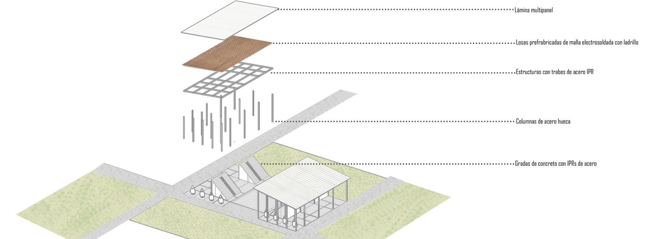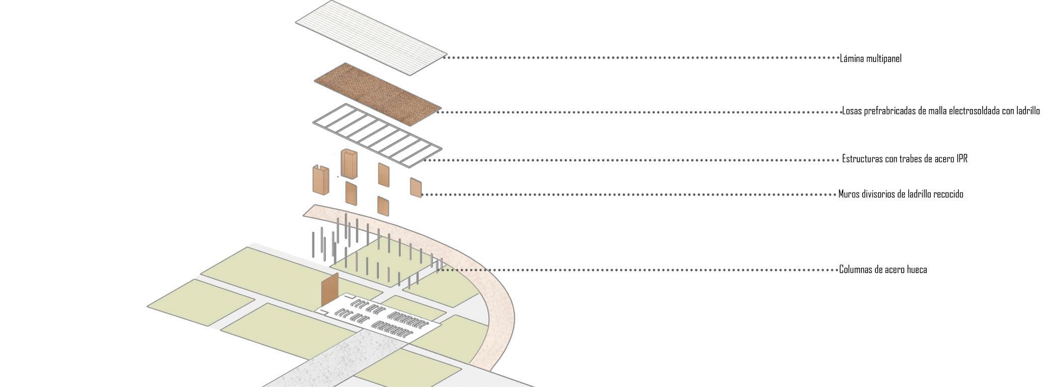 El sistema constructivo que se eligió fue el de vigueta y bovedilla, con el propósito de hacer su construcción más ligera y reducir su costo económico a favor de los usuarios.