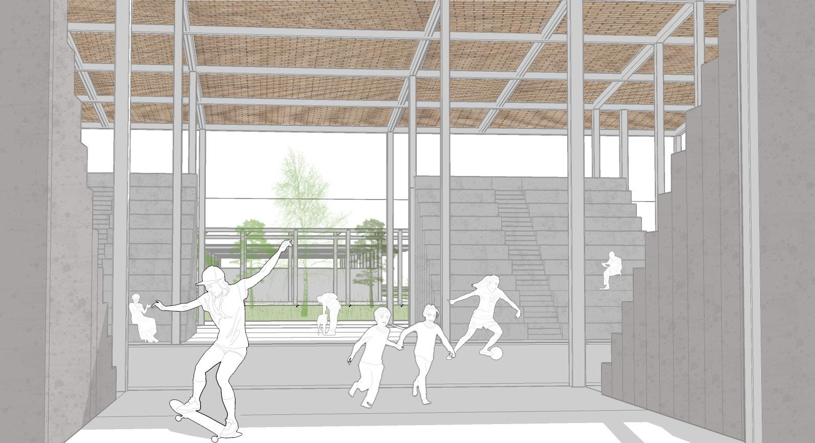 El segundo edificio es un centro recreativo para niños, un lugar cubierto donde se puedan impartir distintas actividades, desde clases de baile hasta la cascarita de futbol después de la comida.