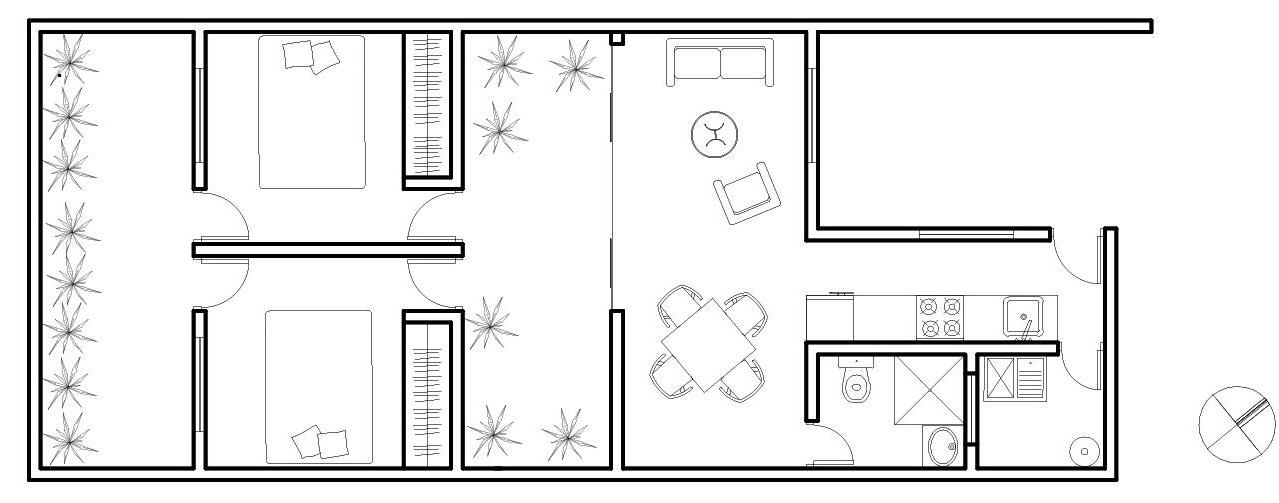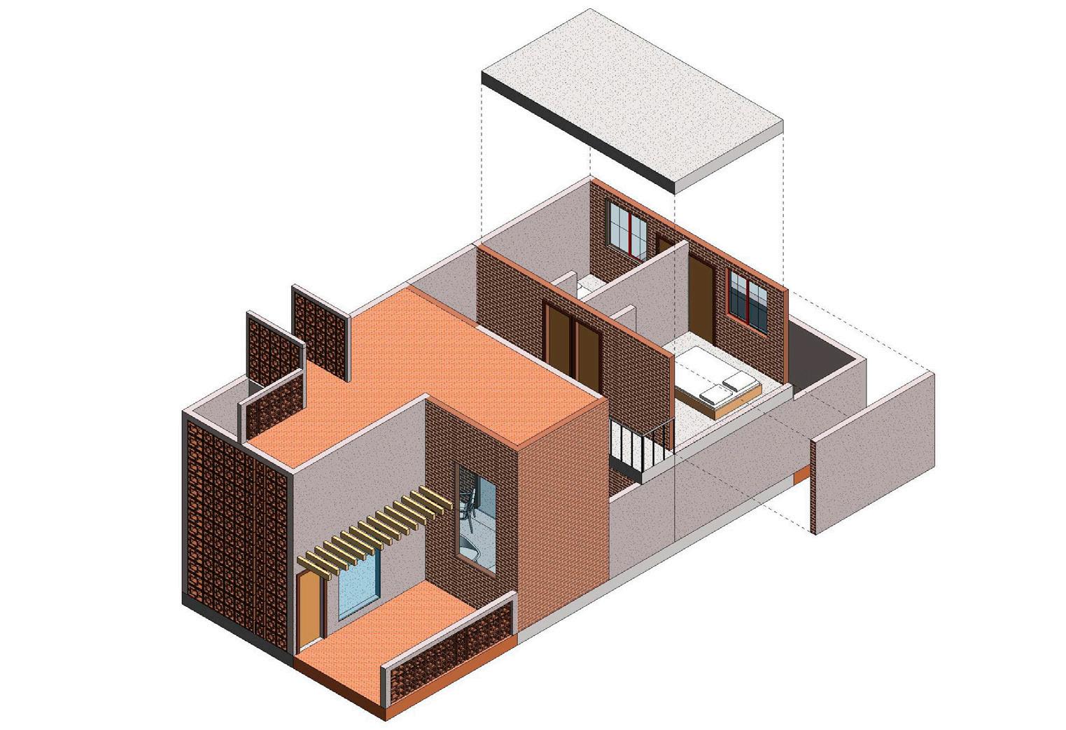 Es un proyecto que tiene como visión a futuro el crecimiento de una segunta planta con dos habitaciones más y una terraza.