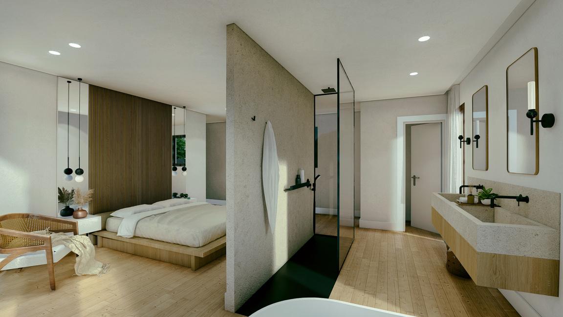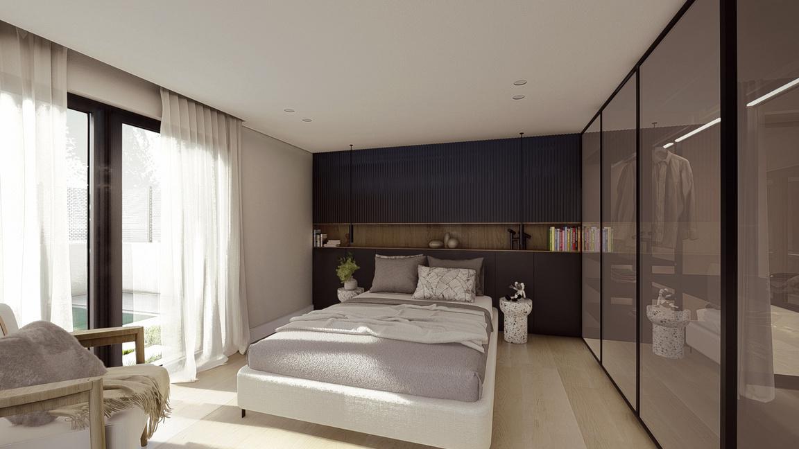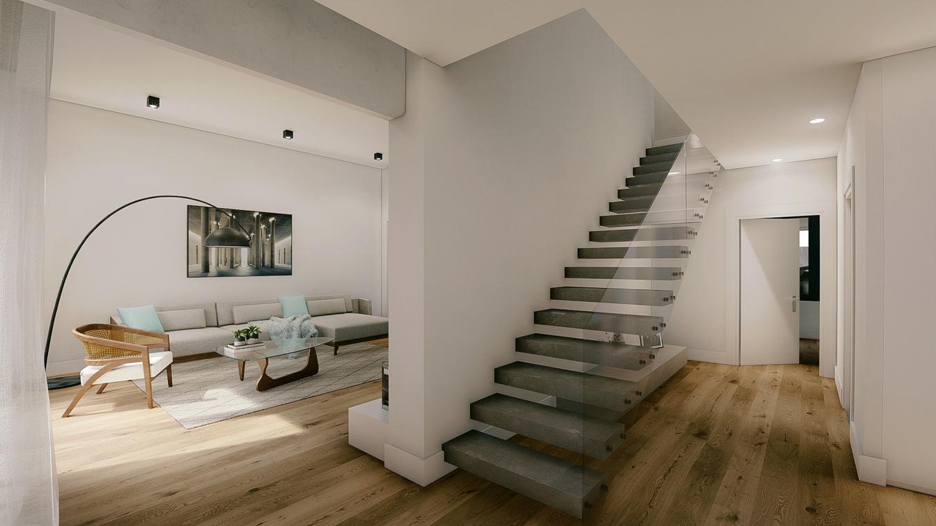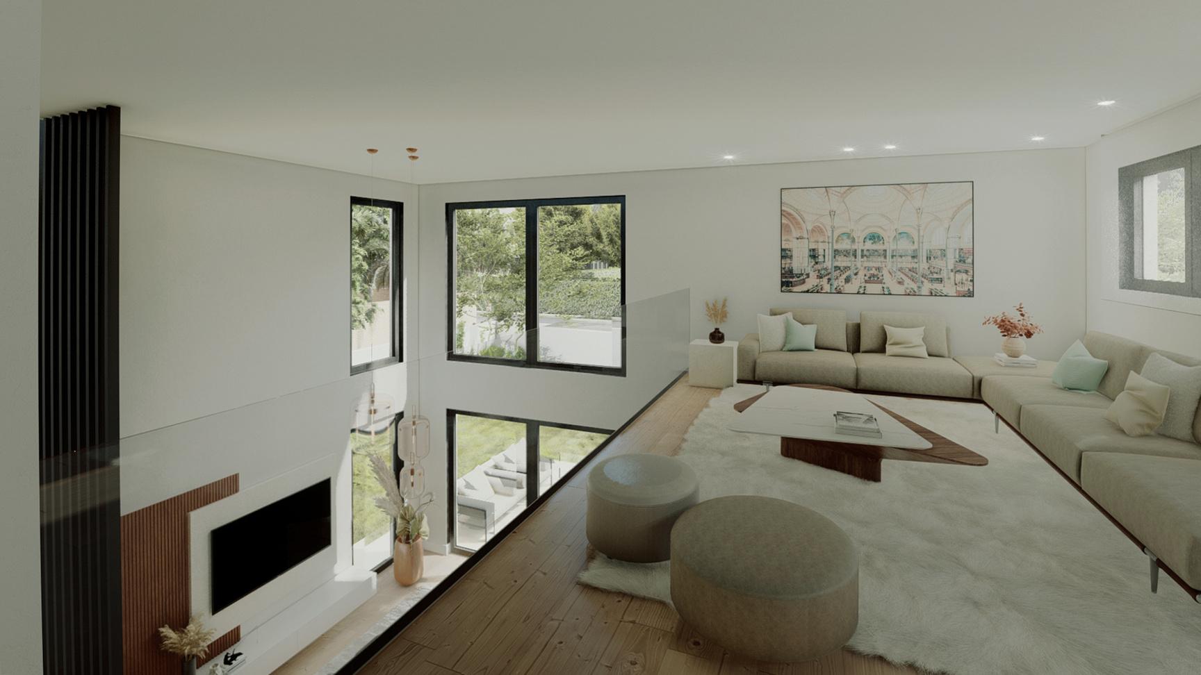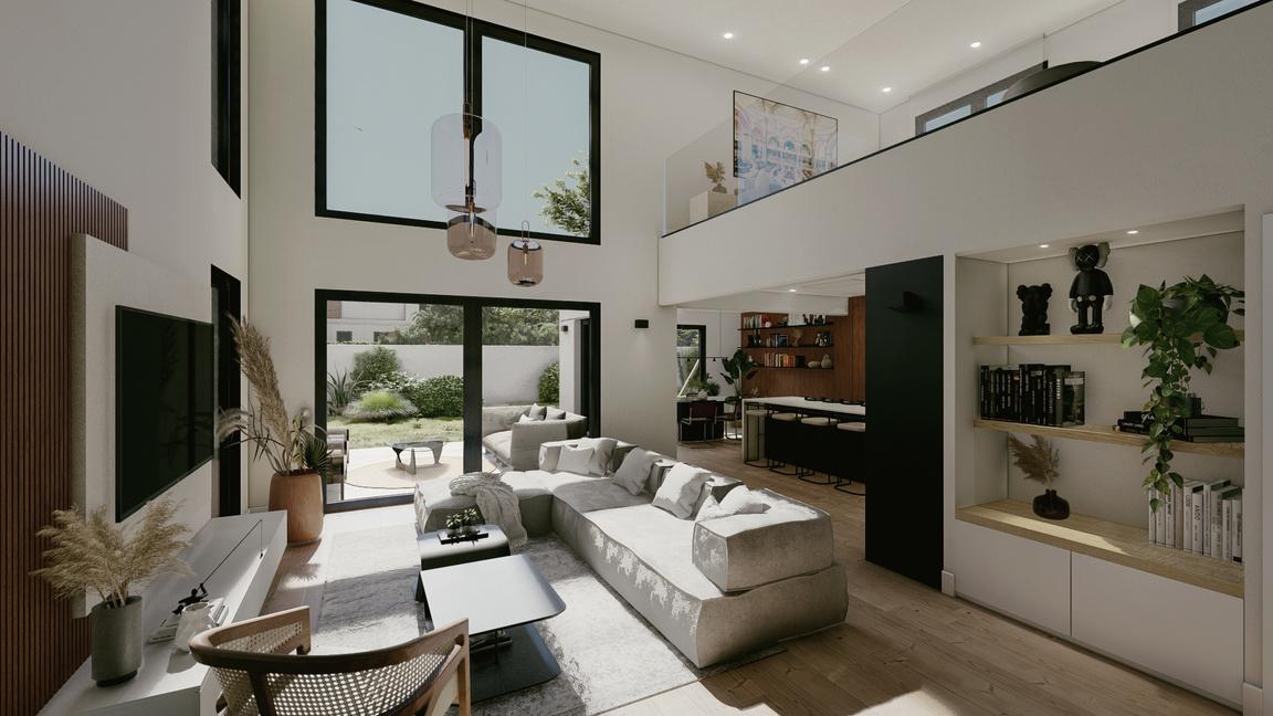 Proyecto de vivienda unifamiliar que se desarrolla en dos pisos. Tiene salón a doble altura, lo que genera amplitud en el espacio principal de la casa. La vida se realiza en la planta baja, pero la primera planta consta despacho y habitación de invitados, ideal para tener un lugar de trabajo y tranquilidad.