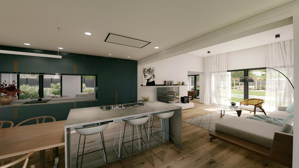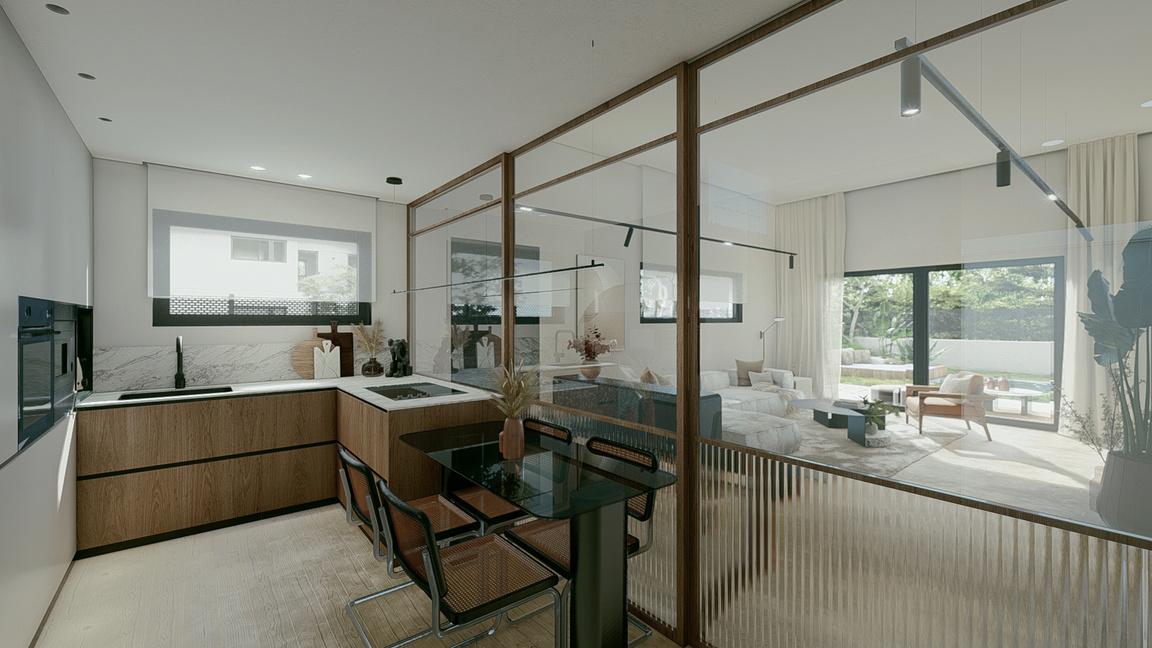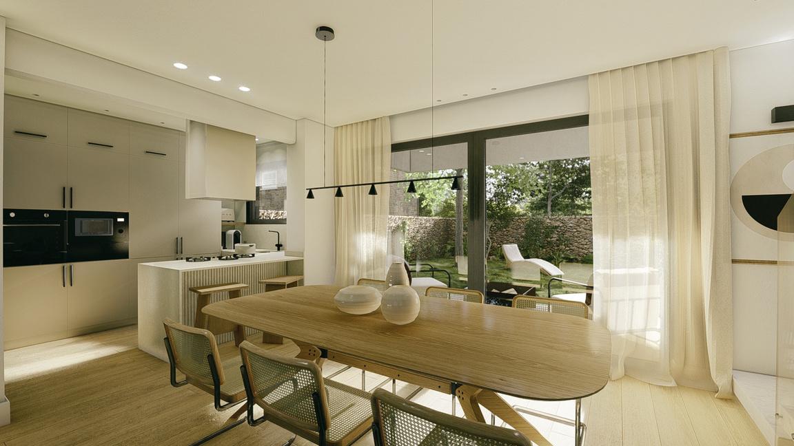 Este proyecto cuenta con un espacio de cocina abierta con zona de comedor incorporada, que genera una sensación de amplitud y continuidad de espacios.
