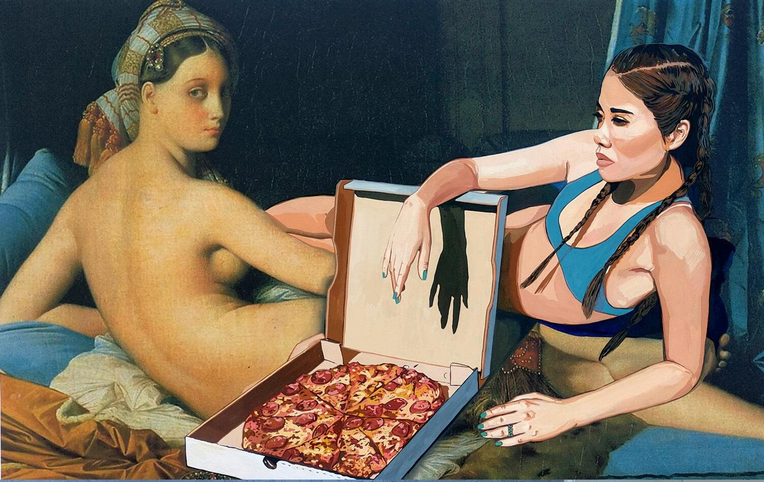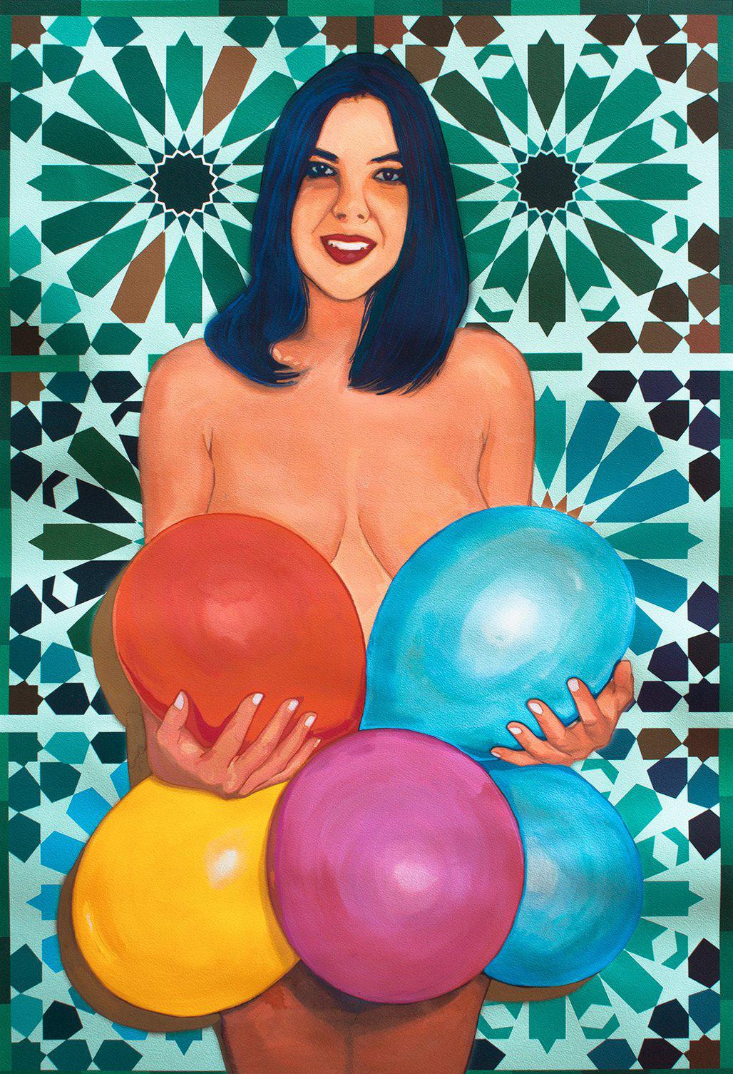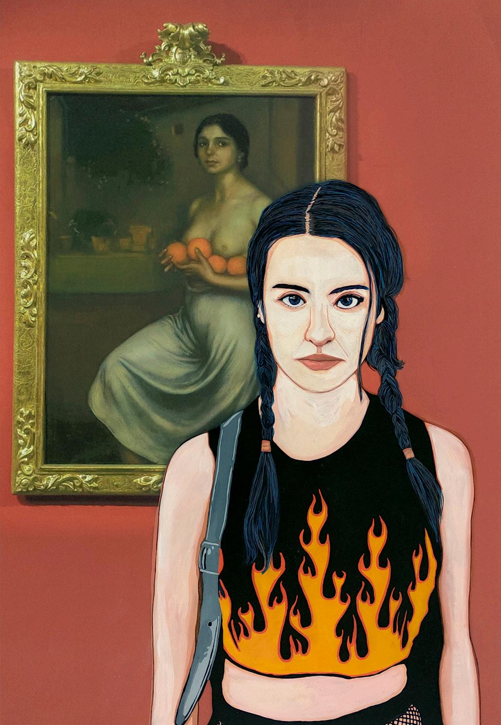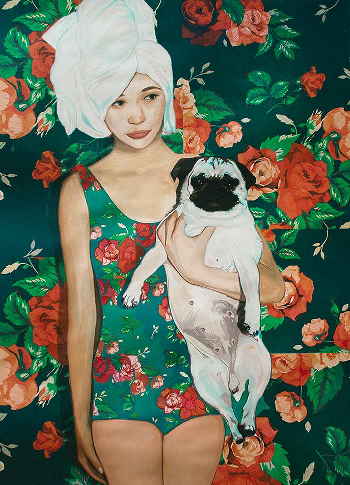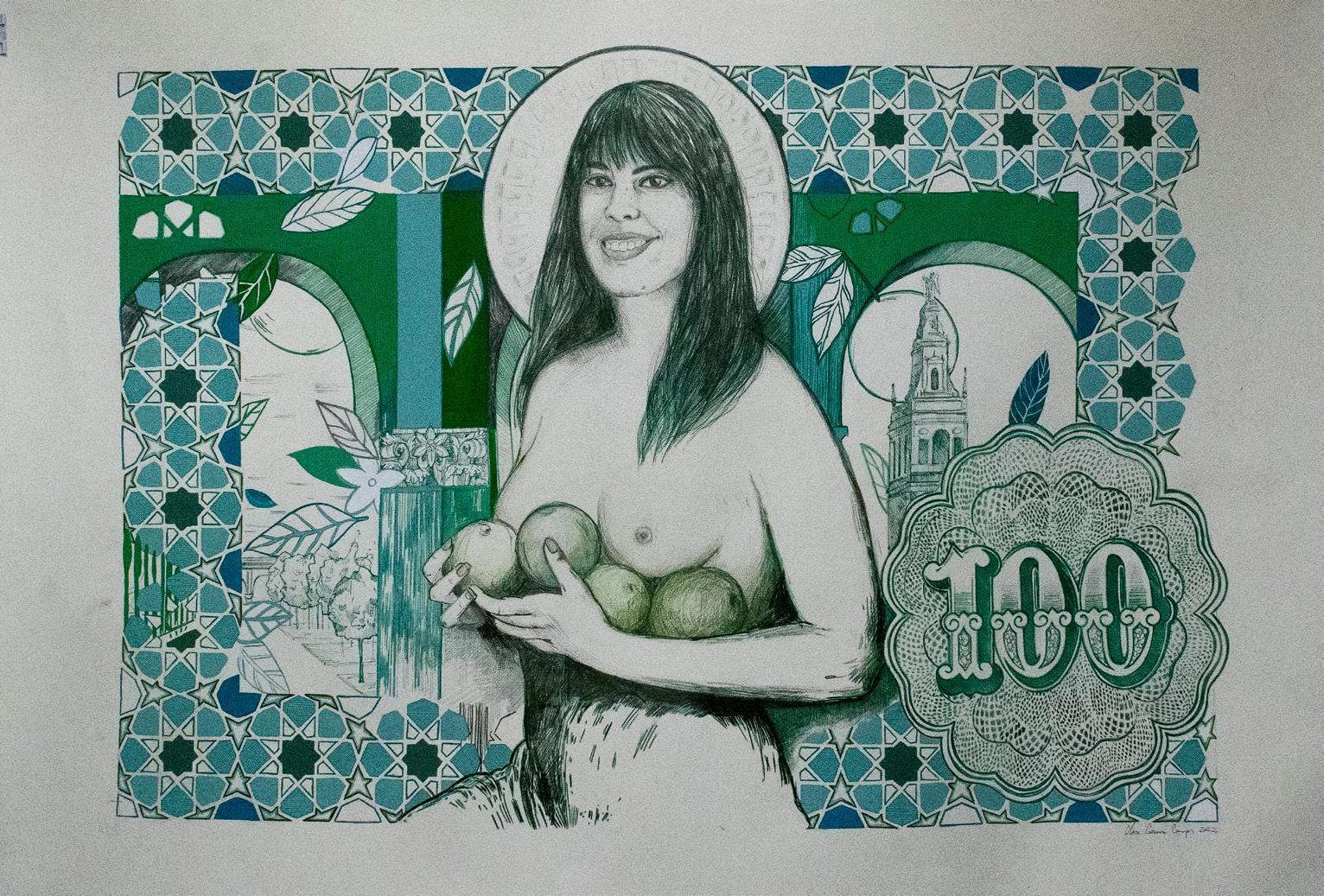 Mi proceso creativo se caracteriza por la importancia que adquieren el procedimiento y la técnica, en particular el uso de la témpera. Para la concepción y ejecución de mis piezas integro diversas disciplinas, sobre todo la ilustración, por lo que me considero una artista plástica. Con todo ello, trato de examinar y exponer el papel femenino en la sociedad y el arte, así como conceptos culturales que influyen en la composición de una identidad colectiva En este ámbito, enlazo los elementos populares de mayor tradición con referencias a la sociedad de consumo –la publicidad, la comida y las marcas, especialmente– y a la historia del arte.