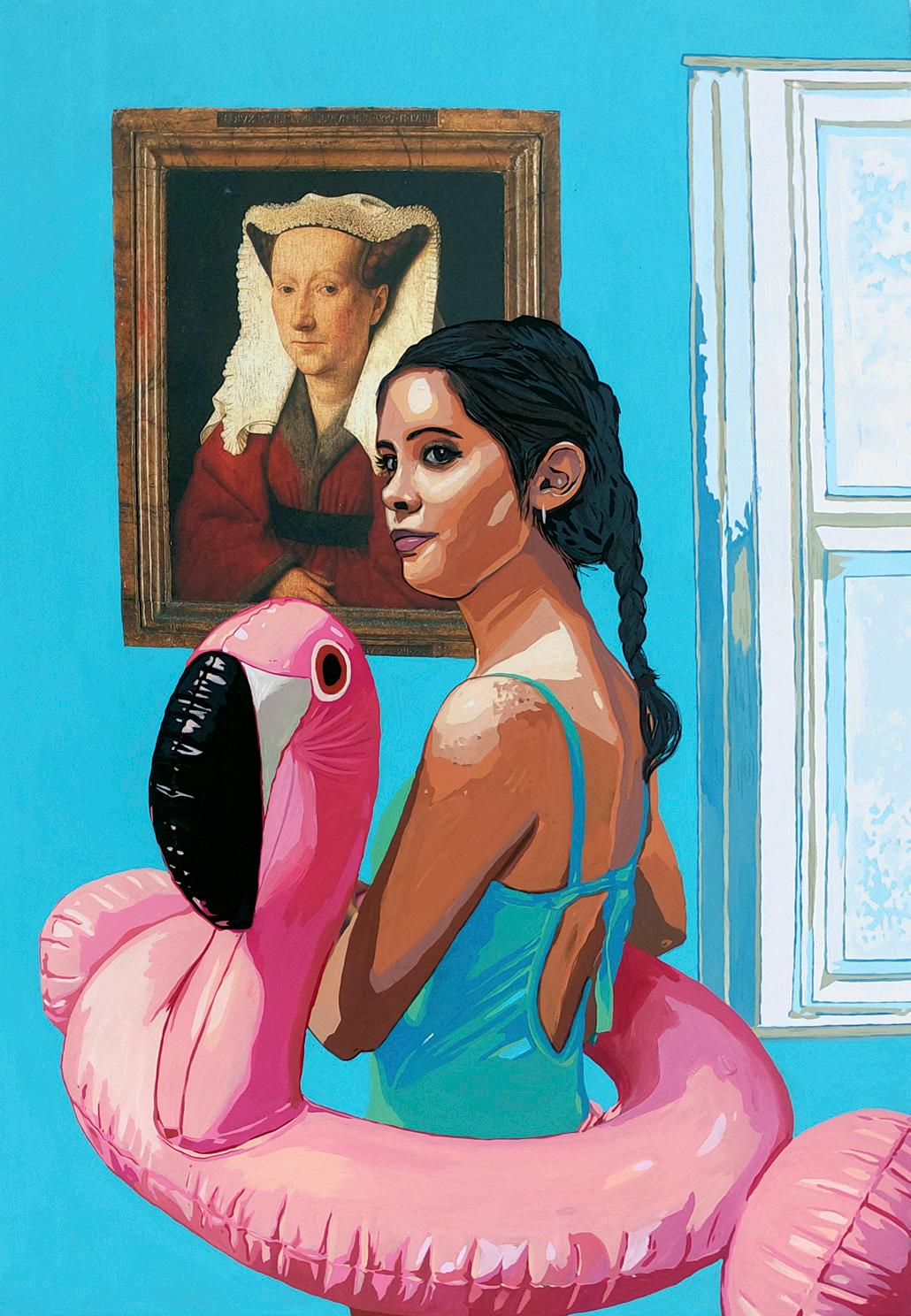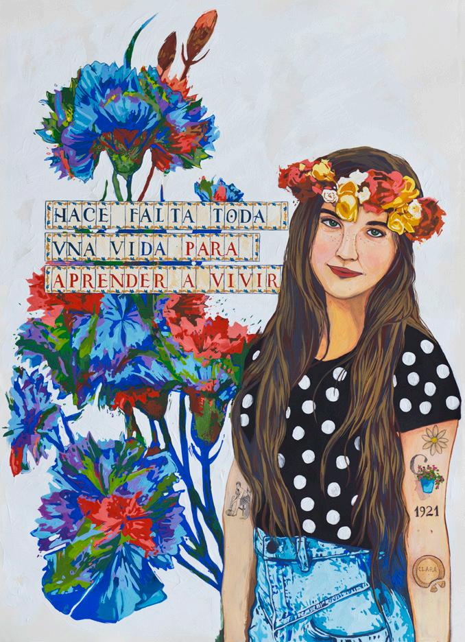 Iconos contemporáneos es un mundo volcado en lienzos. Un mundo que nunca deja de ser real, y, por consiguiente, crudo y en ocasiones oscuro, pero también un lugar lleno de positivismo, simpatía, algo de sarcasmo y color, mucho color. Clara Gómez Campos está hecha de detalles y sus cuadros están hechos de ella.