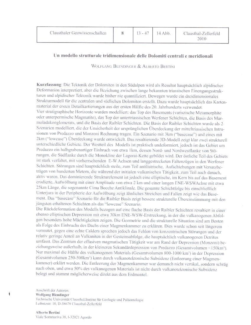 ALBERTO BERTINI -Un modello strutturale tridimensionale delle Dolomiti centrali e meridionali