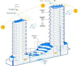 The final form consists of two high-rise towers with a wellstructured base, achieving a harmonious balance between functionality, aesthetics, and environmental considerations.