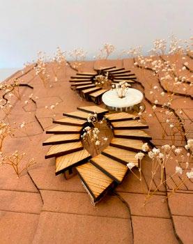 With the primary challenge focused on creating a space through parameterization and utilizing programs such as Rhino and Grasshopper, the project was designed around a mechanized pavilion inspired by the form of an iris. This structure operates through motorized railings powered by electricity generated from solar panels.