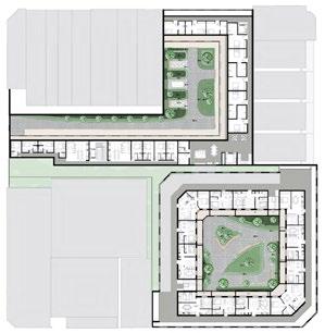 A key aspect of the project is its sensitivity to the surrounding urban fabric. Unlike conventional high-rise residential buildings, this development adopts a smaller scale to maintain harmony with its context. Additionally, a wrap-around façade strategy is implemented to ensure a seamless transition between the new structure and the existing streetscape. This design decision preserves the continuity of ground-level conditions, reinforcing a sense of cohesion within the neighborhood and fostering a more user-friendly and inviting environment.