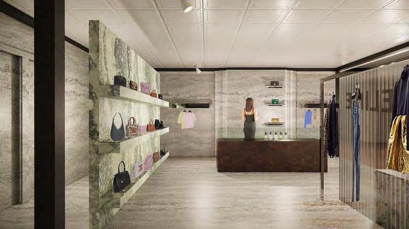 AXONOMETRIC VIEW WiththeinspirationofArtDecomaterialswitha mid-centuryapplication,wewereabletocurate ashop-in-shopthatbothvaluesthefutureof Celine,cateringtoayoungeraudienceand focusingonatrendierstreetwearpurpose,and Celine’spast,whichwillalwaysreflectFrench fashionheritagetoitscore.