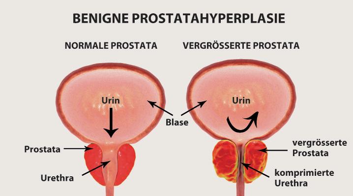 Eine benigne Prostatahyperplasie komprimiert die Urethra und kann zu Miktionsbeschwerden führen