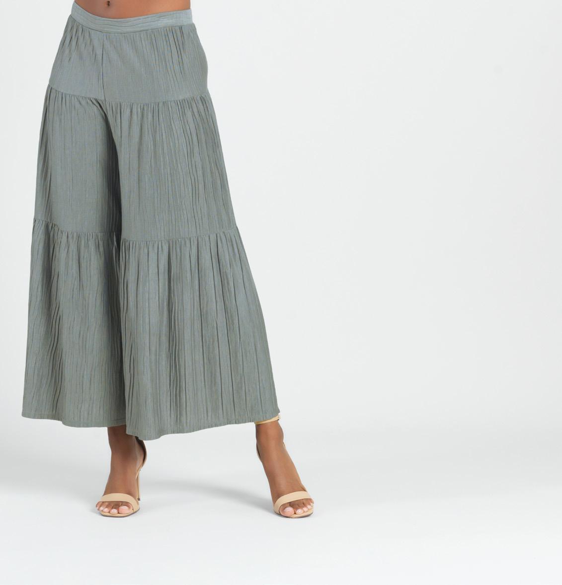 SOFT RAYON KNIT GAUCHO CROPPED PANT W/ PLEATED POCKETS