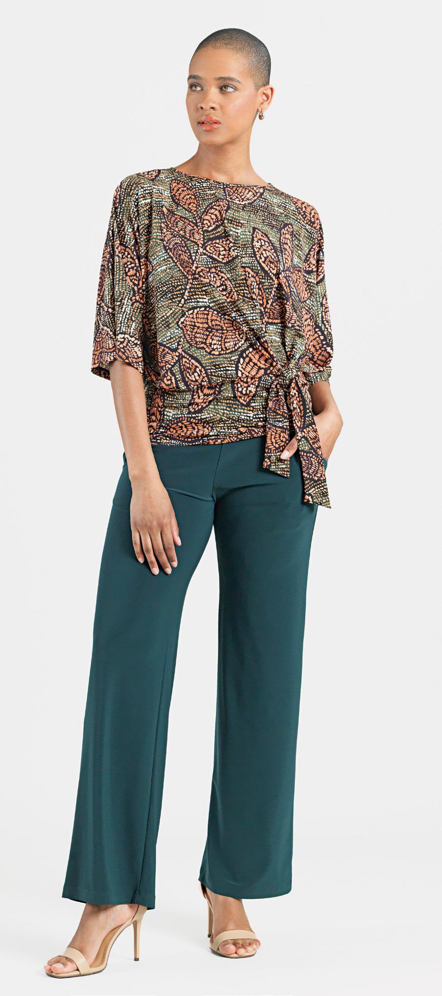 PANT ANKLE LENGTH SOFT KNIT PETAL PANT W/ FRONT CENTER SLIT & POCKETS