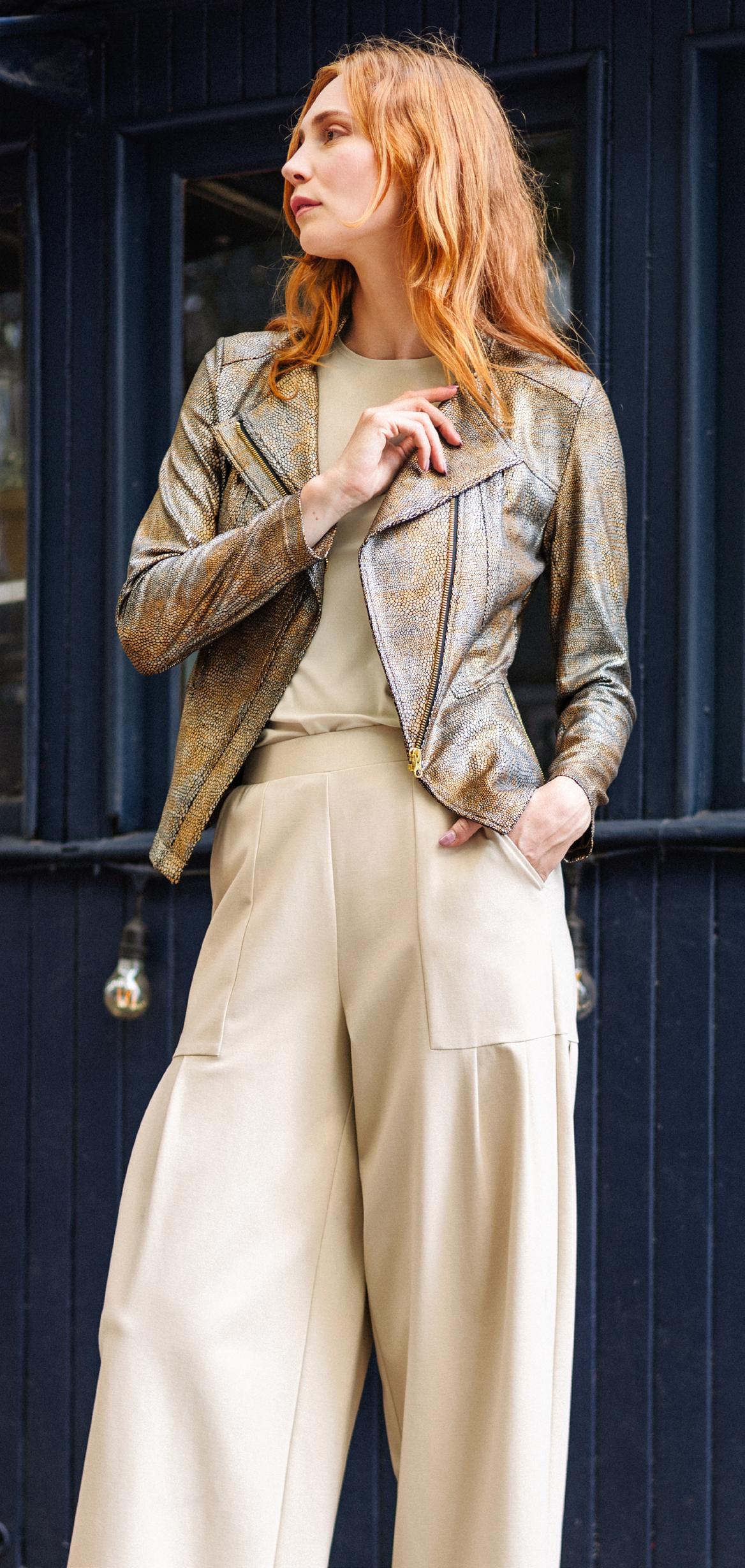 JACKET LIQUID LEATHER HIGH WAIST JACKET WITH CUFF ZIP DETAILS