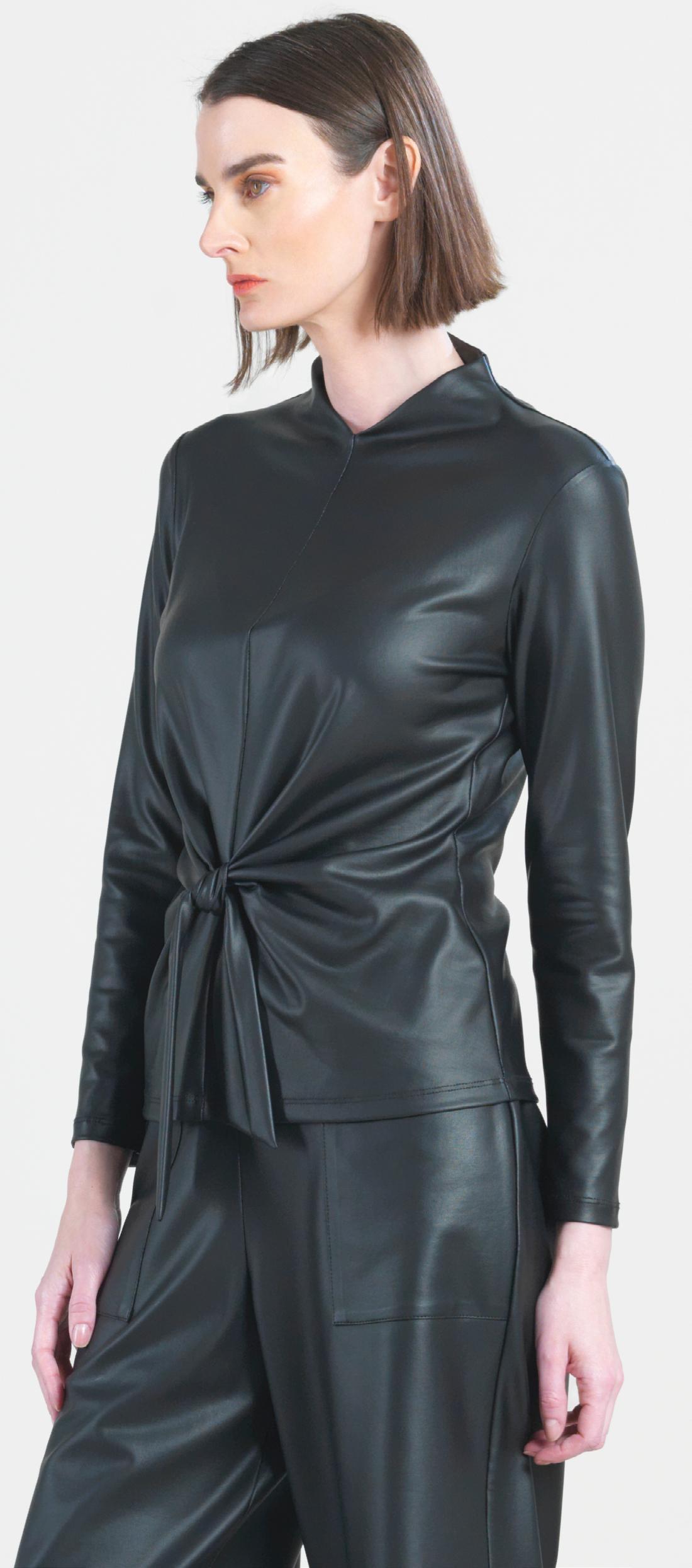 LIQUID LEATHER KNIT TOP WITH CENTER TIE