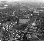 Slum clearances and industrial decline leaves the area neglected and most vacant lots are used for car parking.