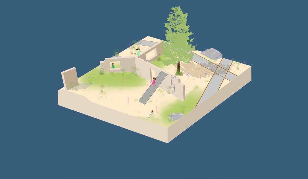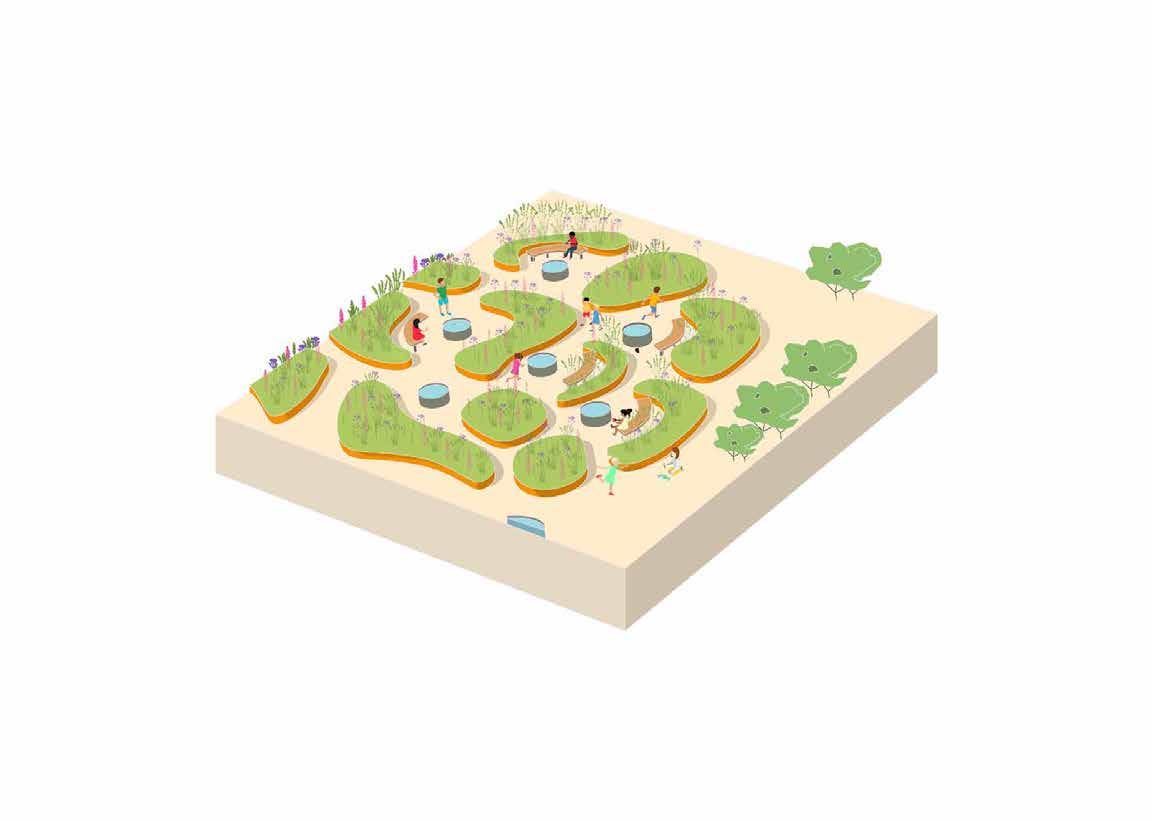 The landscape offers children opportunities for agility, fantasy and construction play as well as space to socialise.