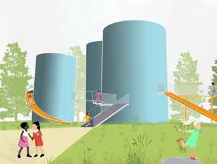 Bringing connection to the historic features of the park the slides utilise the existing structures and topography to bring and element of fun to Angel Meadows