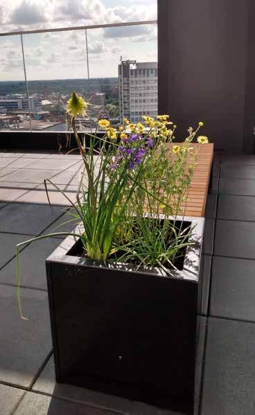 The residential block at bishopgate gardens is a redevlopment of an existing structure. The client had constructed a roof terrace that they wanted to use as a communal space for residents. The design of the space was severly limited byt the maxiumum load restrictions. I liaised with the structural engineer to develop a compromise that fitted within the saftey limits and still provided some greenery on the roof tops for the residents.