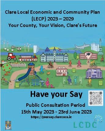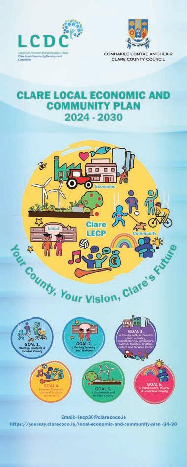 The Clare Local Economic and Community Plan 20242030 sets out a strategy and vision for the development of County Clare over the next six years. This plan, which is the culmination of extensive consultation with communities and organisations throughout the County, seeks to ensure that County Clare thrives as a vibrant, prosperous, sustainable and inclusive place in which to live, work, and invest. This plan contains six high-level goals informed by public consultation, socio-economic analysis and extensive collaboration with relevant stakeholders to identify the key needs of the County, including housing, transport, infrastructure and access to healthcare.