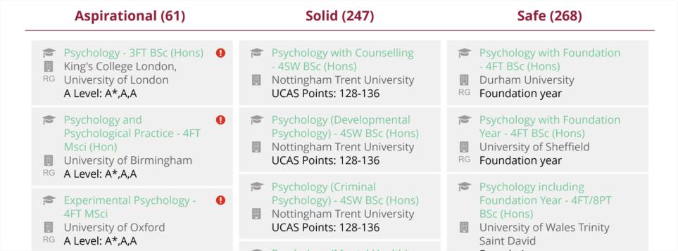 This is an example of choices for an applicant with 3 A grades predicted at A Level.