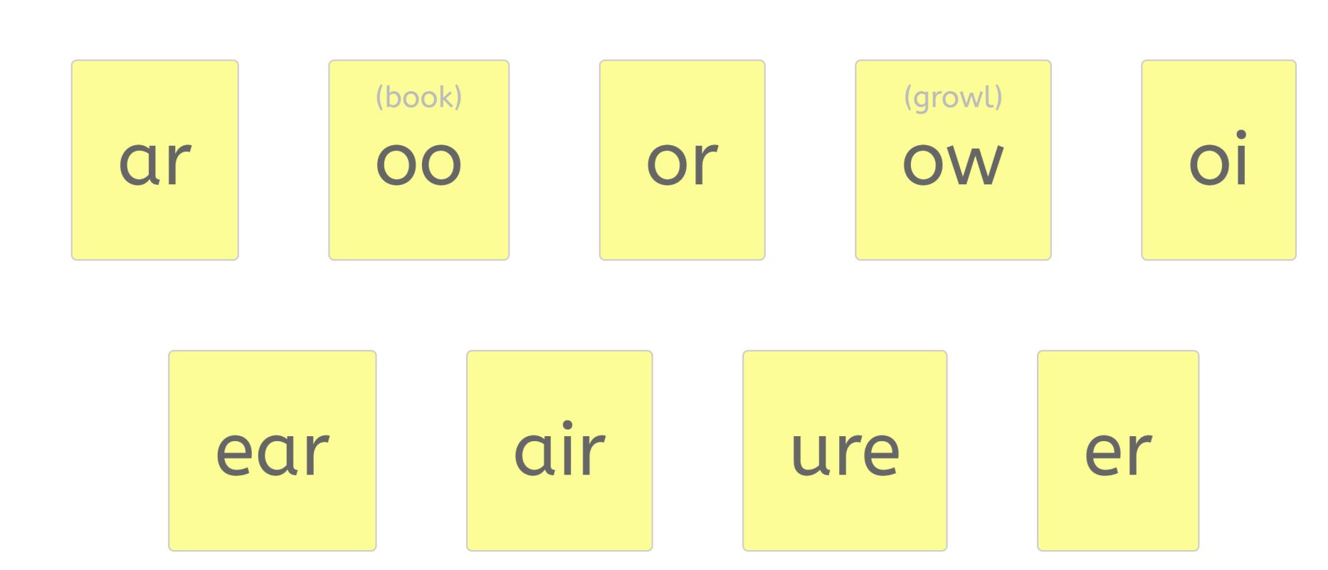They will learn the long vowel digraphs; ai, ee, igh, oa, oo, ar, or, ur, ow, oi, ear, air, ure, er