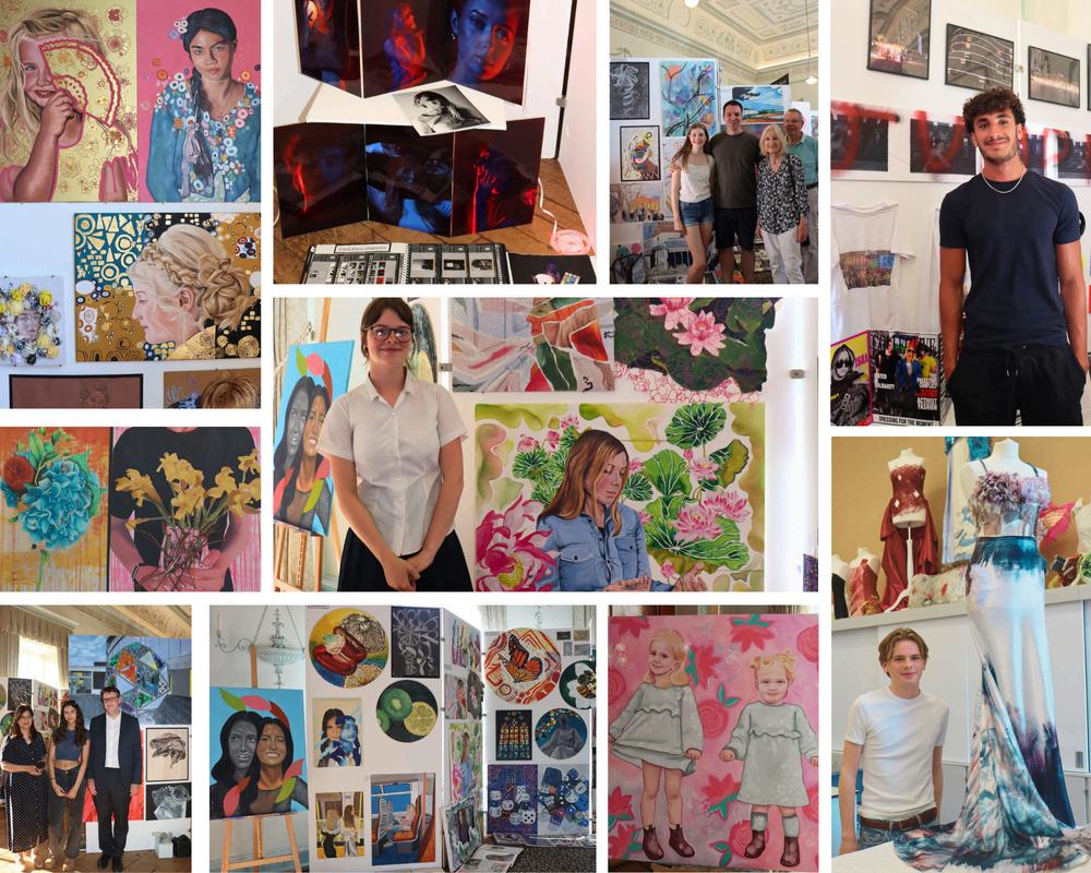 This year, the Art and Design Department proudly showcased the exceptional work of our Year 11 and Year 13 exam students across Art, Photography, and Textiles. The exhibition was held in the Great Room, Drawing Room, and Henry Holland spaces that provided a stunning backdrop, with their natural light and high decorative ceilings perfectly complementing the diverse array of creative work on display.