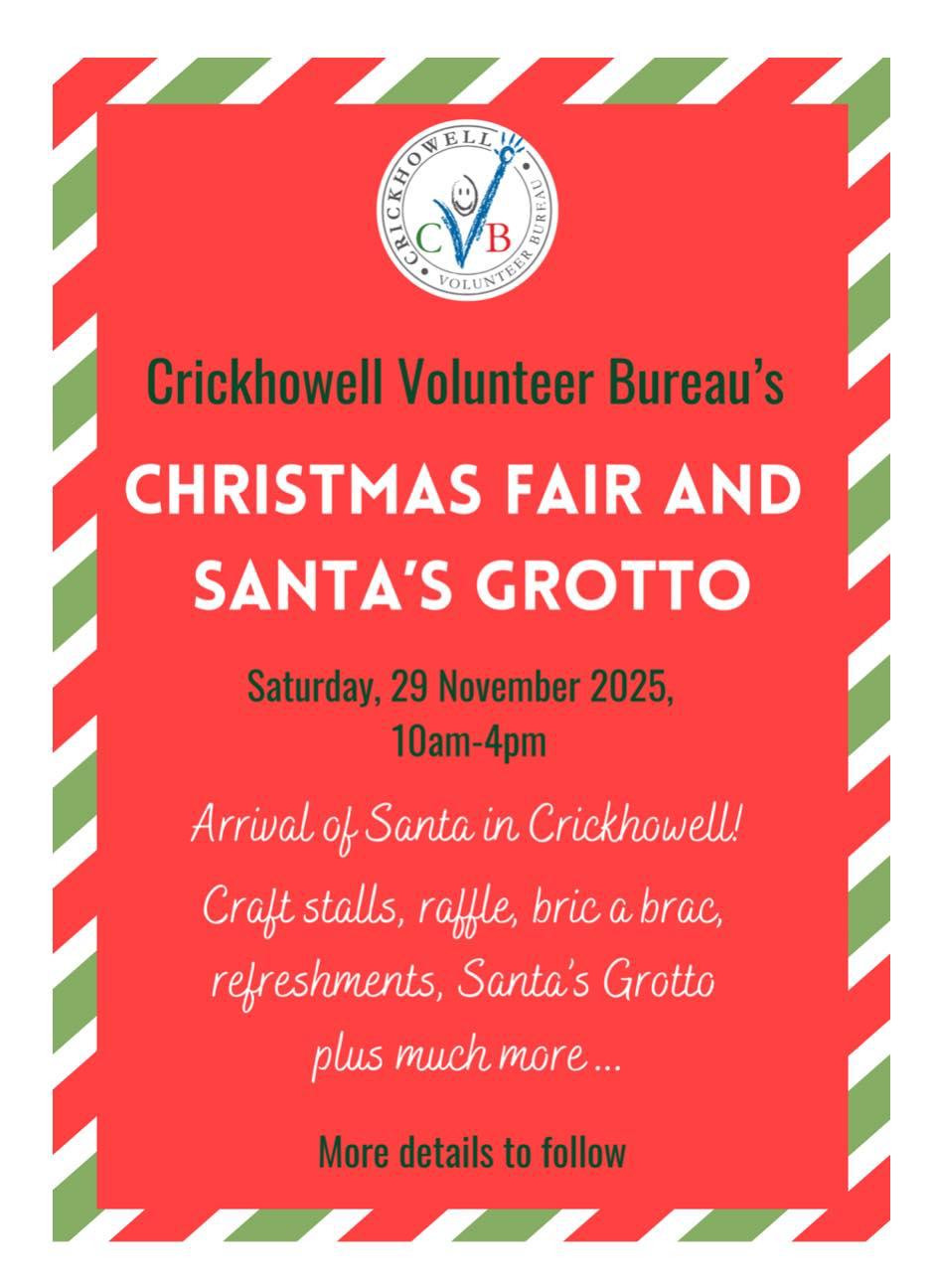 Join Crickhowell Volunteer Bureau at the Clarence Hall on Saturday, 29 November for their annual Christmas Fair & Santa’s Grotto! Celebrate the arrival of Santa in Crickhowell. Craft stalls, raffle, bric a brac, refreshments, plus much more!