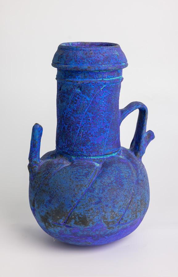 Dry Glaze Pot with Spout 1990, barium blue dry glaze, 30 x 19.5 cm