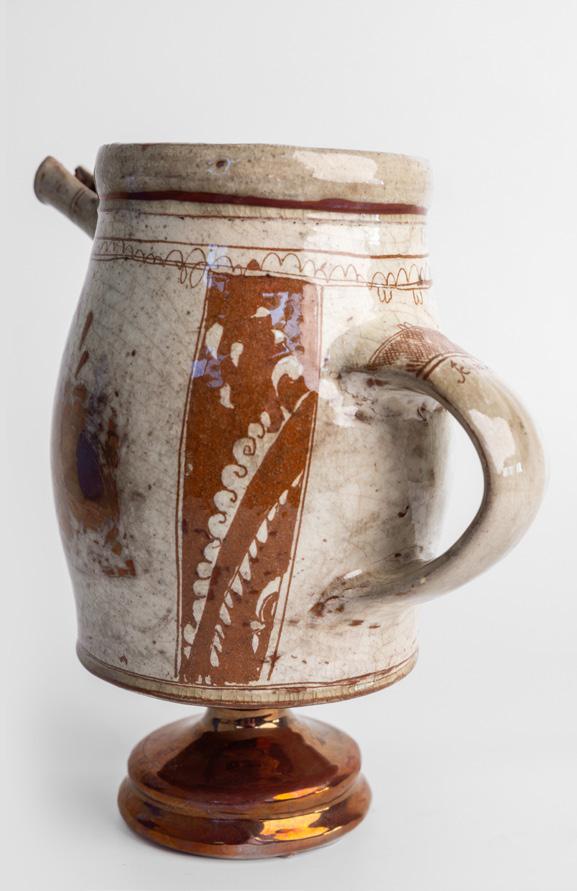 Jug 1983, reduced lustre, clear glaze over slip, wood fired, 23.5 x 18 cm