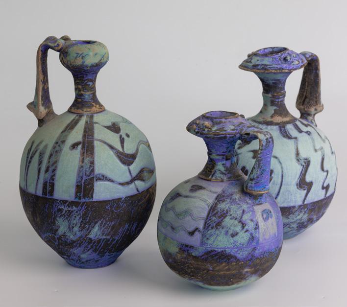 Dry Glaze Pots 2003, dry glaze, barium blue with sgraffito, different dimensions