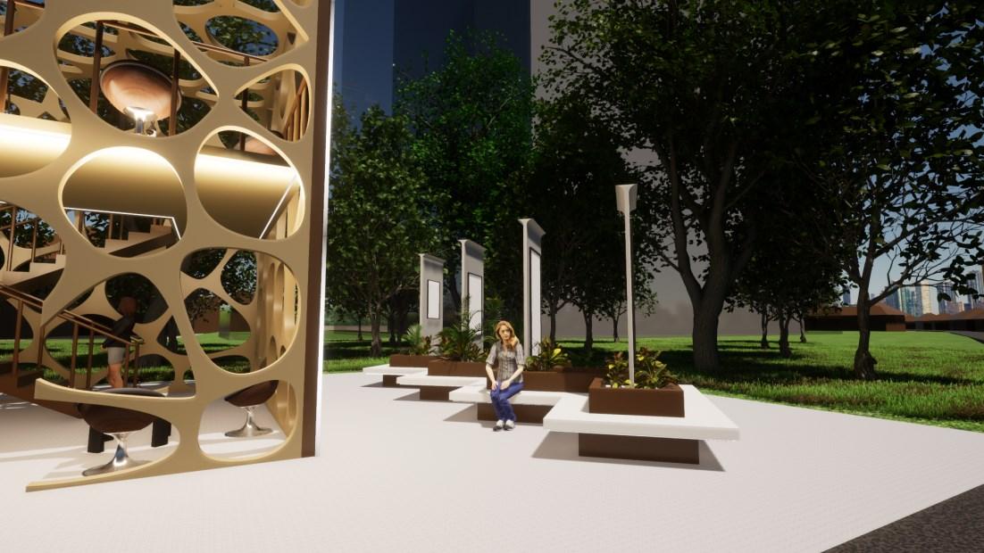 This public park, which is located in the west of Jakarta and has terrible traffic noise and no green space, is intended for people who are sick of working in offices as well as emerging artists. There are 2-storey, each with a different purpose; the ground floor is a calm area, and the second floor has a large table for working on projects or doing homework.