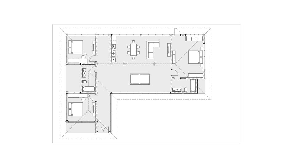 A villa development called L Villa is situated in Berastagi, North Sumatra. having 468 m2 of land. This villa has a master bedroom, two more bedrooms, a bathroom, and a kitchen area that is open to the living room.