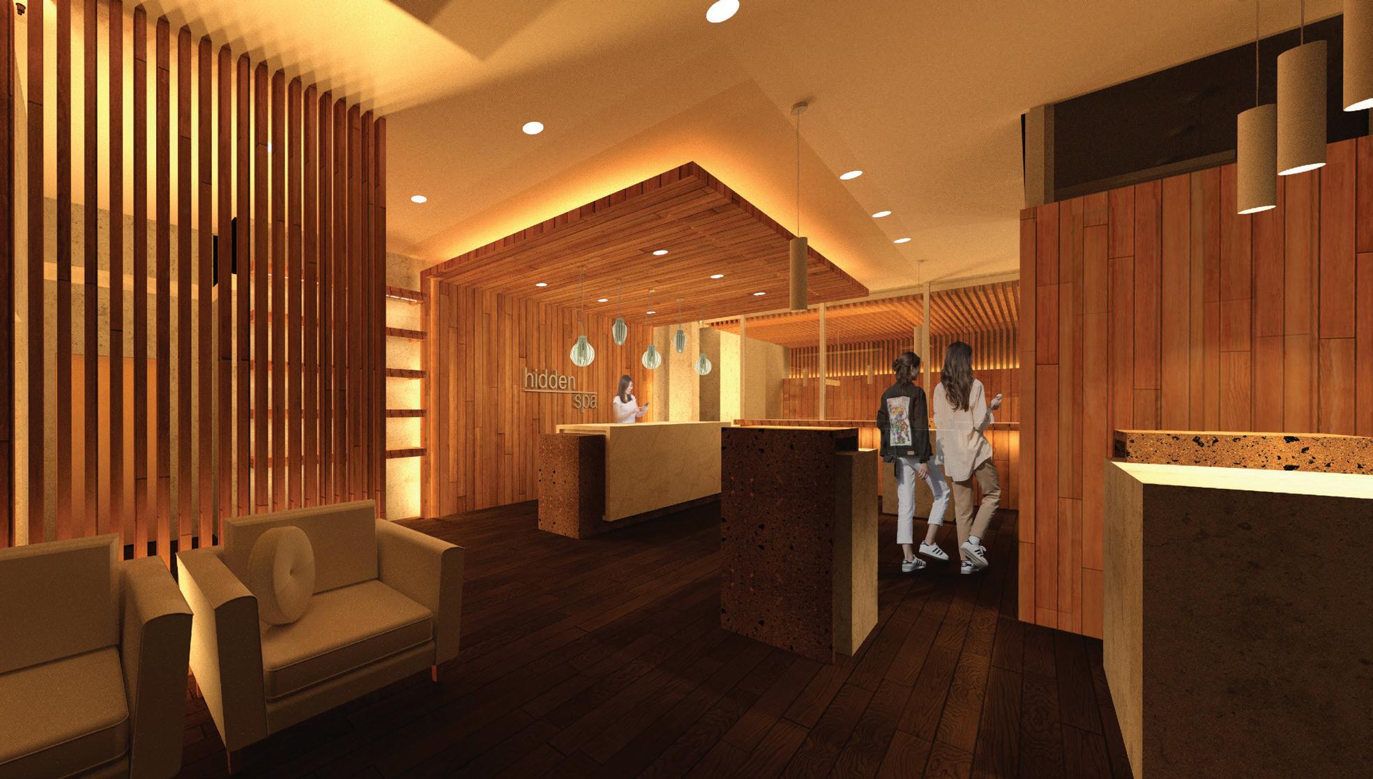 Our lighting proposal for the urban spa presents itself as a warm and inviting space, that brings natural elements to the interior. The application of these materials is emphasized by light, and this helps create different focal points in each room based on their function. The use of wood to create dropped ceilings throughout the spaces allows for the user to focus their attention to the function of the room, while at the same time making it feel more comfortable and intimate. Since each individual space has a different purpose, they provide a unique atmosphere and user experience based on lighting, while still preserving the continuity of the design throughout the space with the repeated use of materials and interior elements.