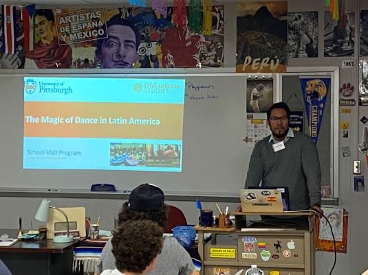 "We are grateful to have had a visit from the Center for Latin American Studies at Pitt. The nicest part about having CLAS visit your school is that it gives you the ability to take your students on a field trip without the logistics and lost time of an actual field trip. What's more, many of my students don't know anyone personally who speaks Spanish natively, and still, others may not know a person of Latine descent. Having two Spanish-speaking representatives of the University of Pittsburgh visit my class gave my students an opportunity to meet people they otherwise would not have met. Lastly, learning about the specifics of demographic and cultural identities can be a bit dry, but the CLAS staff did a great job of engaging the students with an interesting, interactive, and informative presentation.