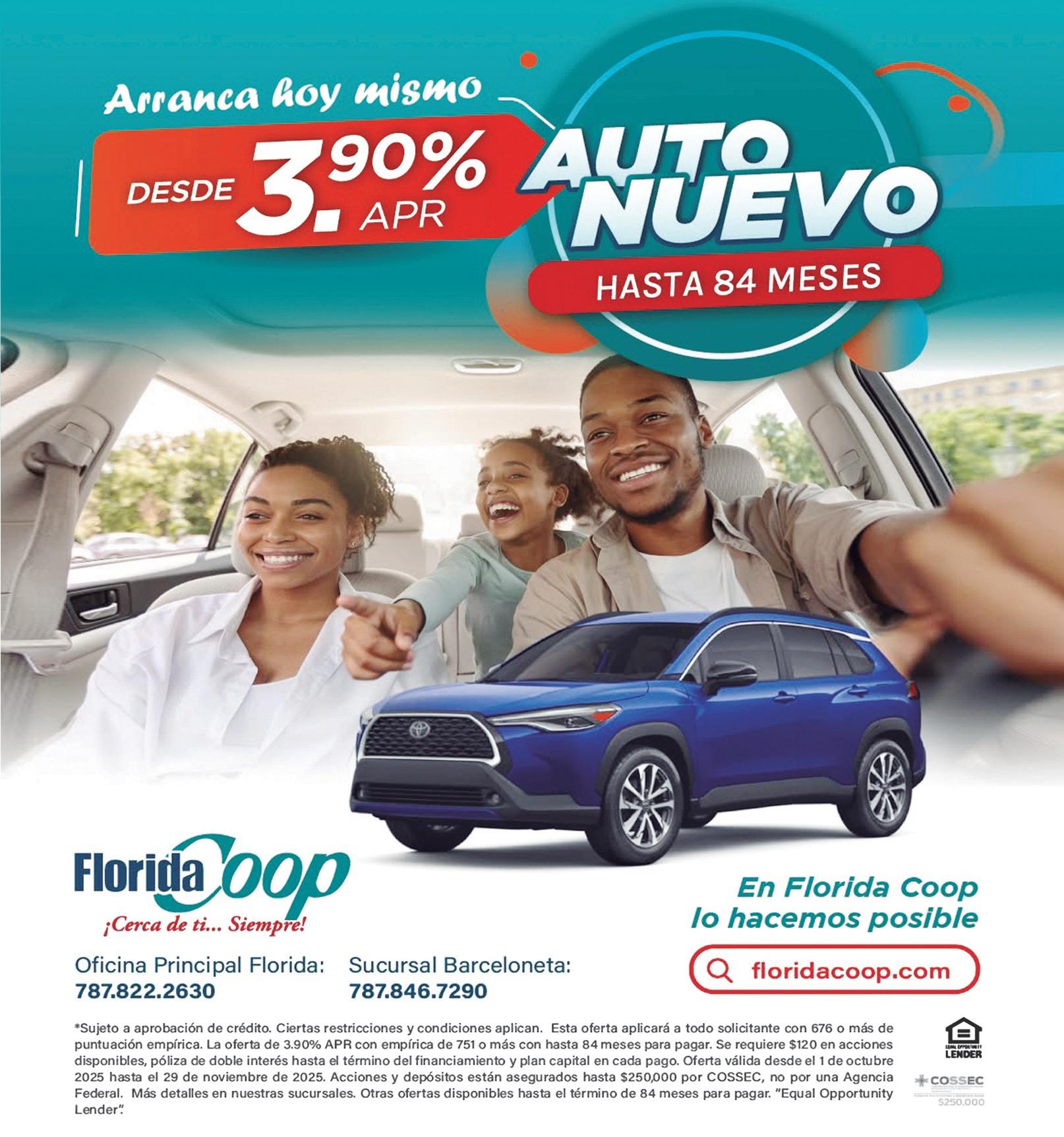 Sujeto a aprobación de crédito. Ciertas restricciones aplican. Se requiere a 15% en acciones y acogerse a pago automatico o descuento nomimal. Acciones y depositos asegurados hasta $250.00 por COSSEC.