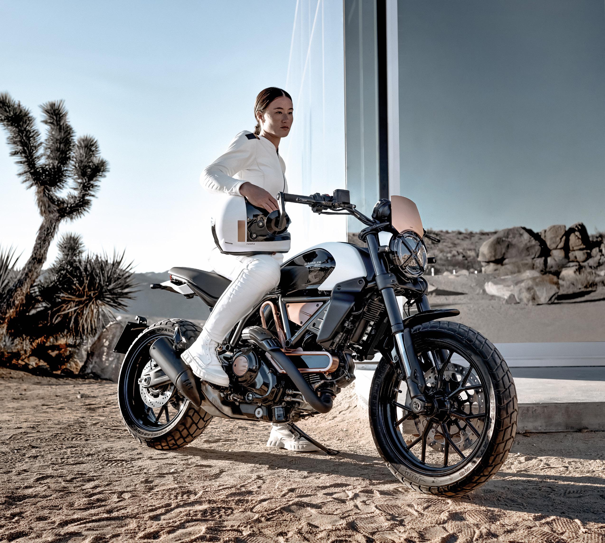 La Ducati Scrambler de segunda generación, nacida en 2023, es una motocicleta capaz de combinar un look Modern Classic contemporáneo e innovador con un contenido técnico que establece los estándares de la categoría. Esencial, divertida, ligera y con una gran personalidad, es la elección perfecta para quienes desean una motocicleta con un estilo único y reconocible, dinámica, accesible y segura para el uso diario. Los clásicos rasgos de estilo de la Ducati Scrambler –faros, depósito, forma de la instrumentación– siguen siendo puntos fijos, refinados en estilo y con contenidos técnicos más actuales, como la instrumentación con una pantalla TFT de 4,3”. Y el motor bicilíndrico Desmodue de 73 CV, mejorado por las nuevas tapas del embrague y del alternador, las cubiertas de las correas y el escape que deja el motor completamente al descubierto, es más ligero y está equipado con Ride-by-wire, cambio rápido y Riding Modes, para aumentar el placer de conducción y la seguridad al mismo tiempo.
