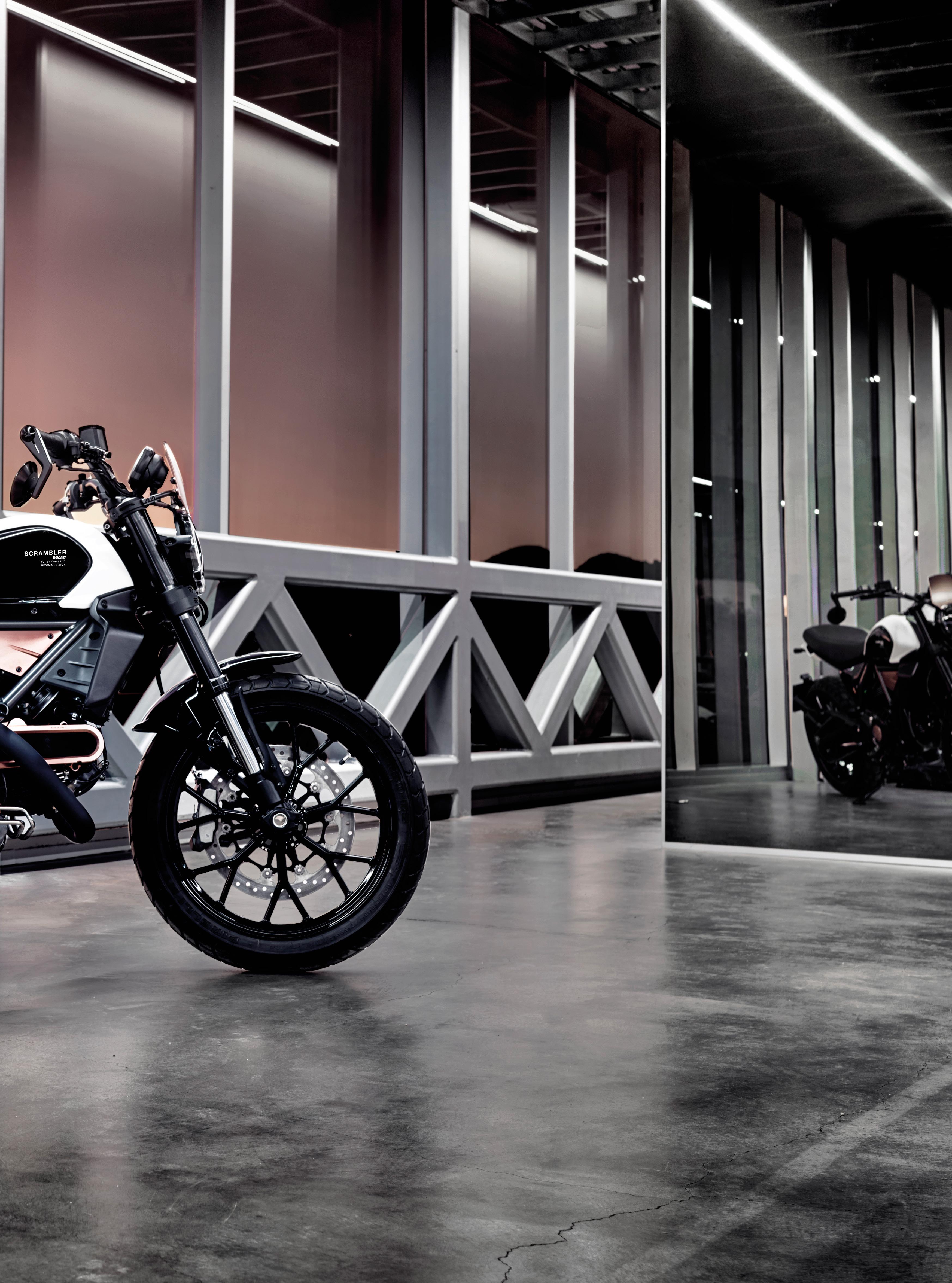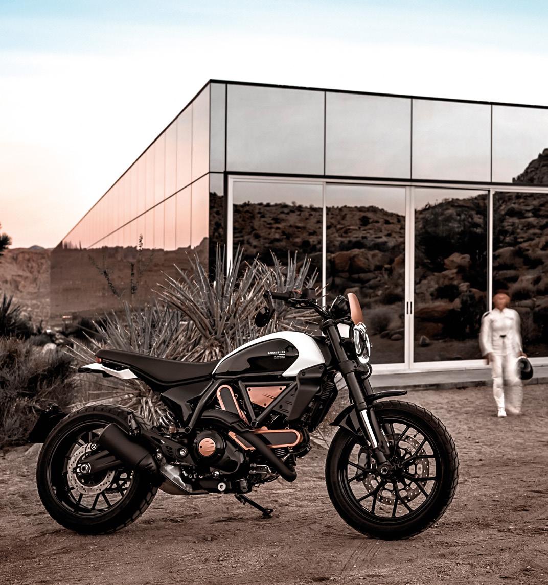 A collectible Ducati Scrambler, where every detail contributes to creating an unmistakable bike, enhanced by the “Metal Rose” components.