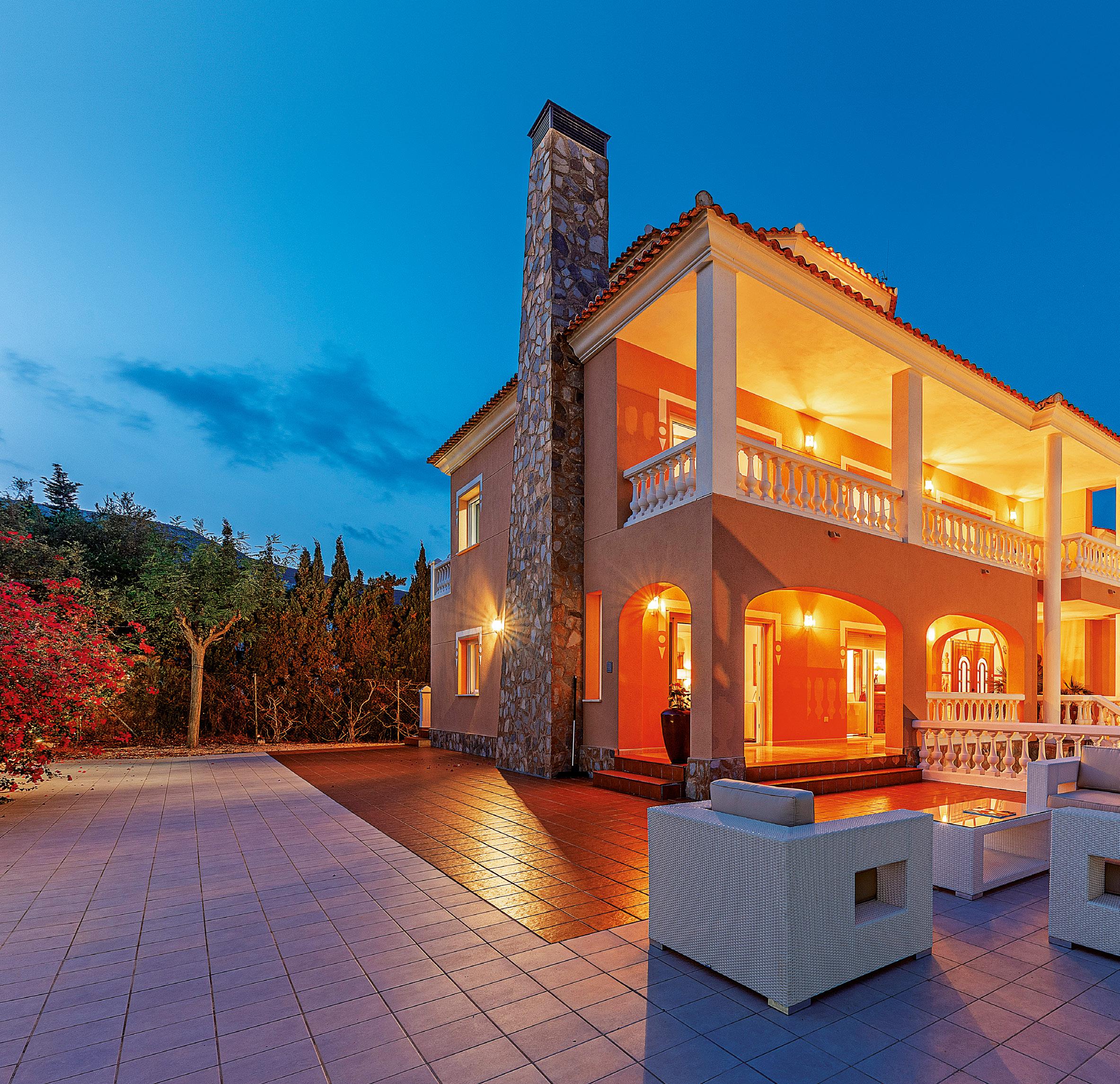 Accessed via a residential road, with close proximity to the N-332 national road, the villa is just 5 minutes by car from the AlicanteValencia motorway, providing excellent transport links. The approach to the property’s elegant façade is via an automated entrance gate which opens up onto a grand driveway.