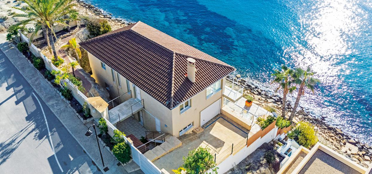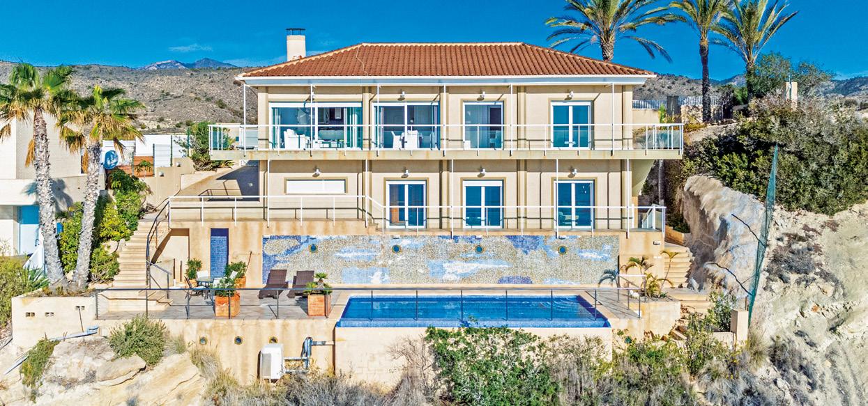 On the seafront, just a few minutes by tram from El Campello, this luxurious four-bedroom villa offers stunning views of the Mediterranean from its elevated location in Venta Lanuza, Campello.