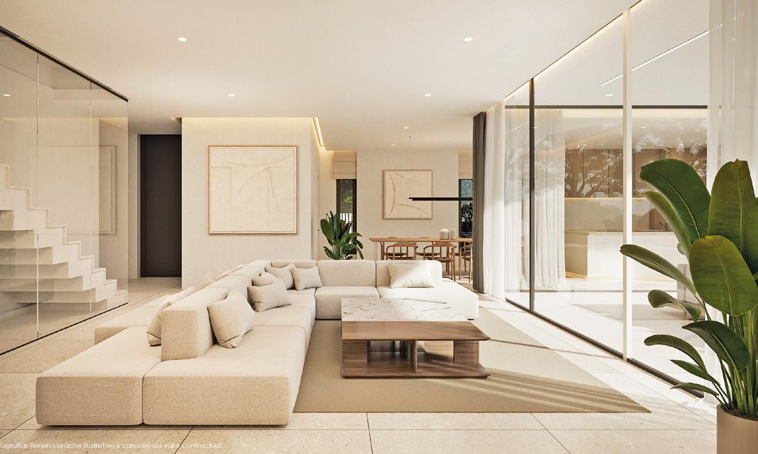 On the upper level, the master suite guarantees maximum privacy, with a dressing room, en-suite bathroom and access to a private terrace. In addition, there are three additional bedrooms, each with its own bathroom and private terrace.
