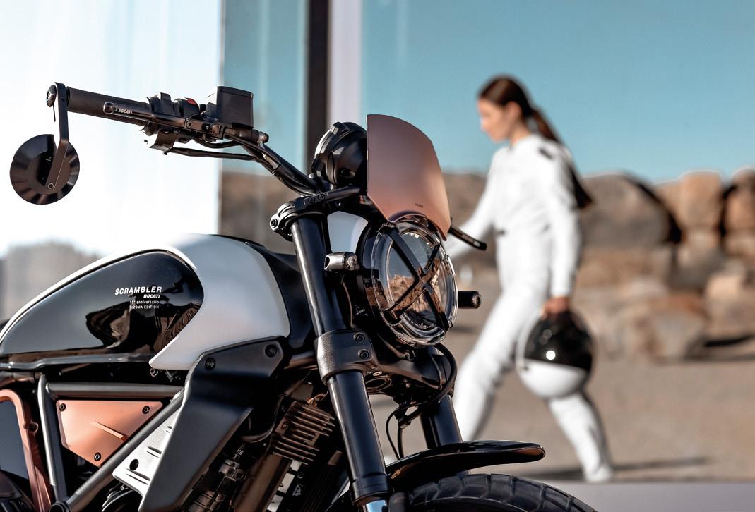 La Ducati Scrambler 10° Anniversario Rizoma Edition se convierte así en una verdadera escultura cuya tridimensionalidad se ve realzada por nuevas y refinadas combinaciones de colores, creando un nuevo hito en el viaje de la Scrambler hacia el mundo del arte y el diseño.