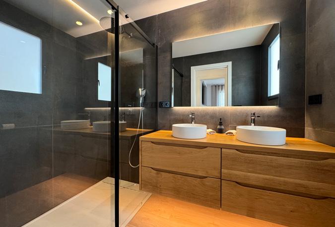 En la planta superior se encuentran dos dormitorios dobles con baños en suite y acceso a una terraza panorámica. El sótano ofrece la posibilidad de crear un apartamento independiente.