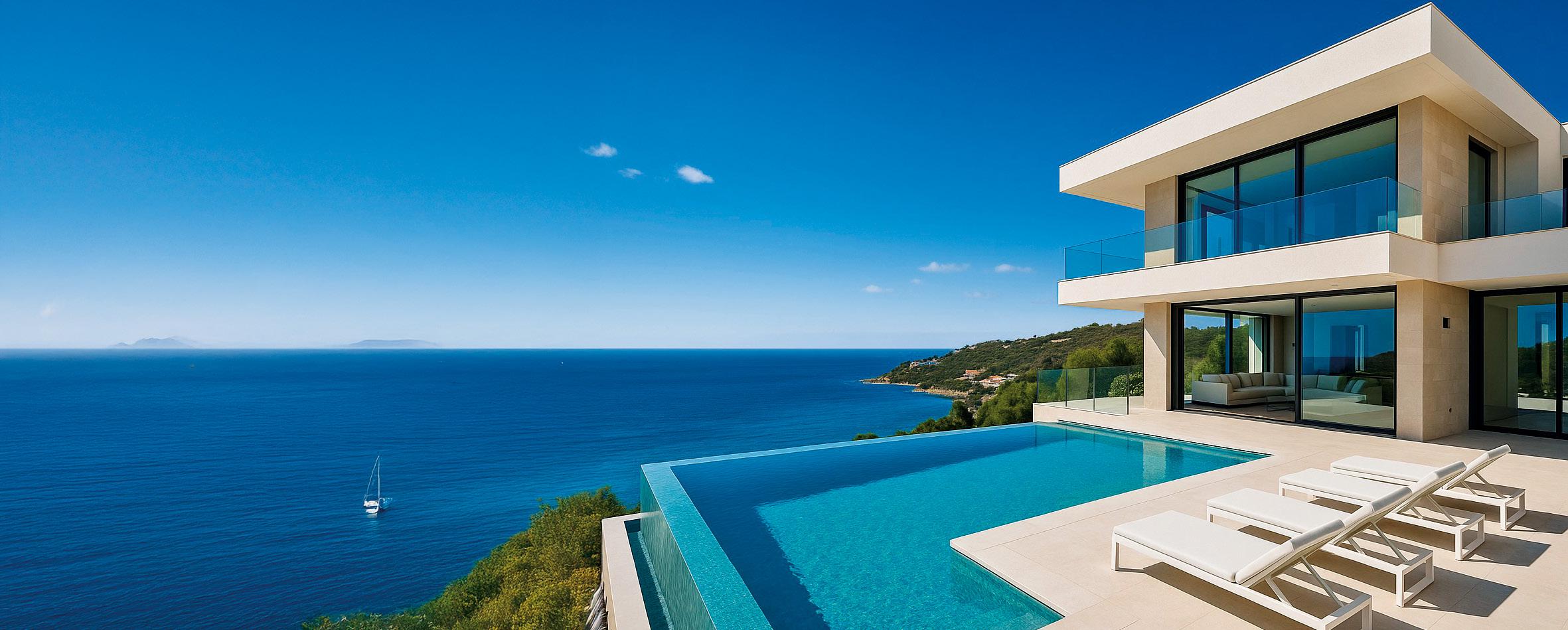 Its features include triple glazing, terracotta floors, woodwork, and iroko wood shutters. Outside, the spectacular infinity pool blends into the blue Mediterranean horizon, creating an ideal setting for relaxation and enjoyment.