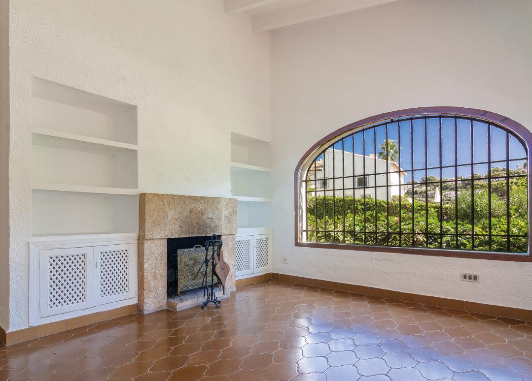 285 m2 C. 1000 m2 P. 4 beds / 2 baths. From this villa for sale in Tesoro Park , Javea there’s an amazing 180º view over the greens of Javea golf club, down the valley toward the sea. Being at the top of a quiet cul-de-sac gives this villa an impressive feel. In total, this villa for sale in Javea has 4 bedrooms and 2 bathrooms. Three of the bedrooms with shared bathroom are found on the main / ground level.