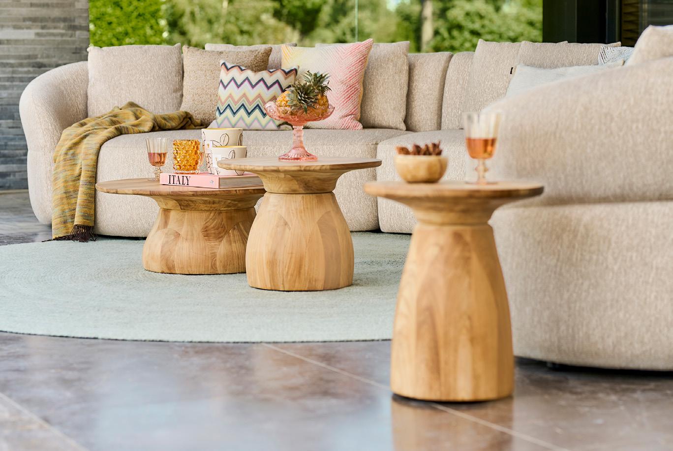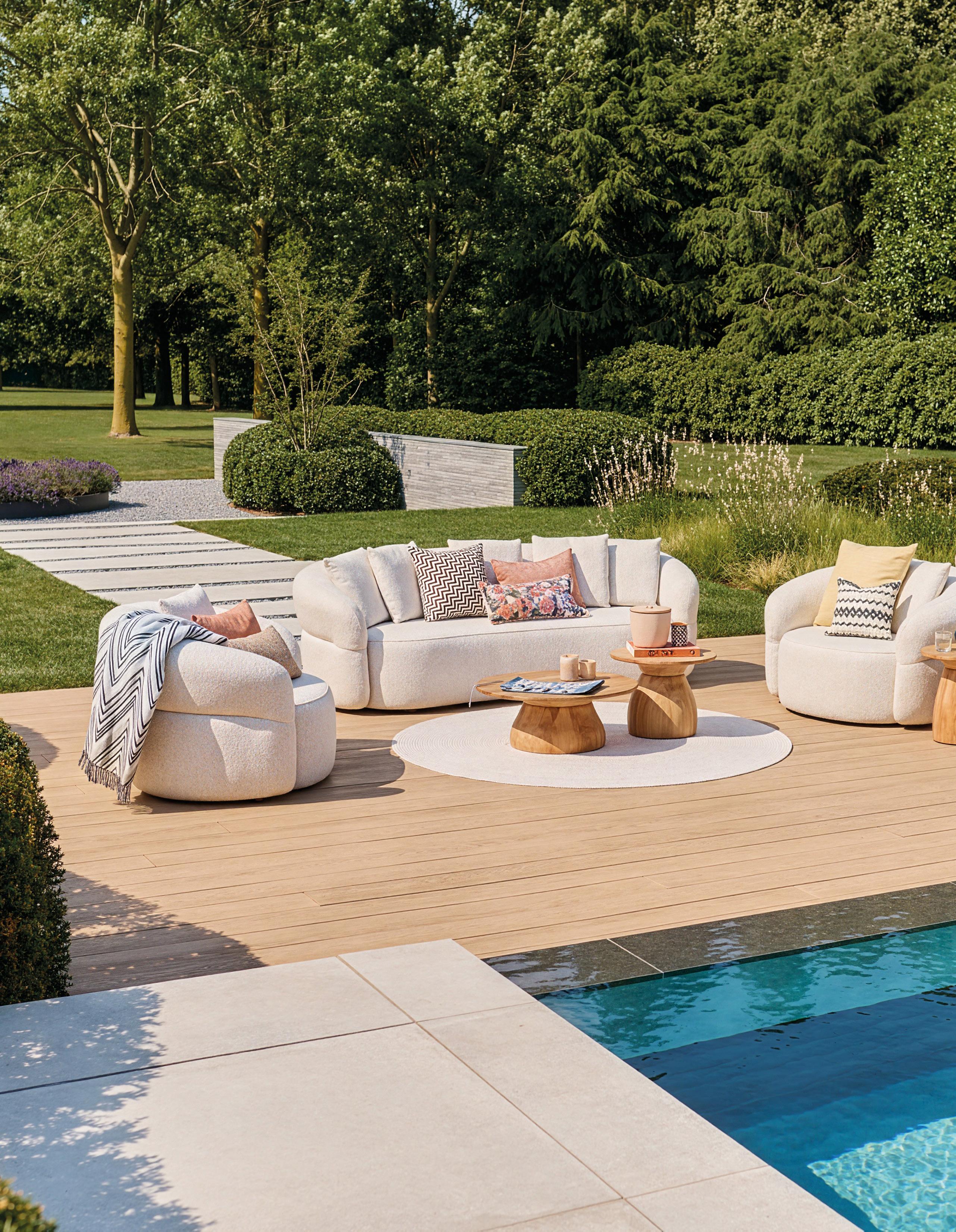 Outside becomes a place to truly meet with Venosa. This fully upholstered sofa set brings warmth and tranquility to your terrace with its soft curves, light tones and refined bouclé fabric. The generous sofa and two lounge chairs create a balanced arrangement that invites long conversations, relaxed afternoons and evenings that naturally last longer.
