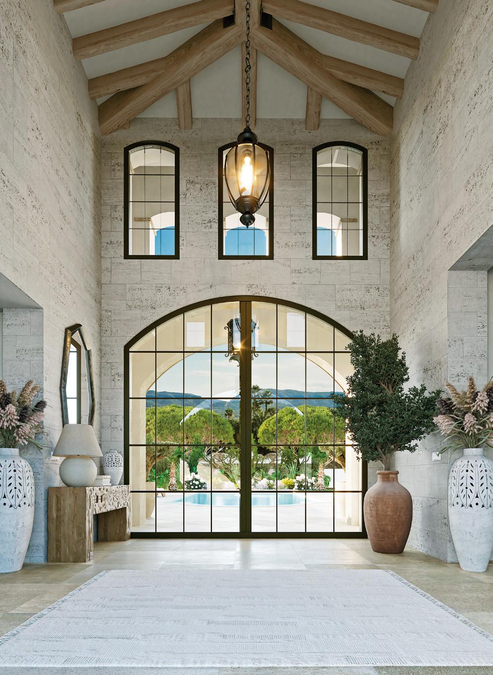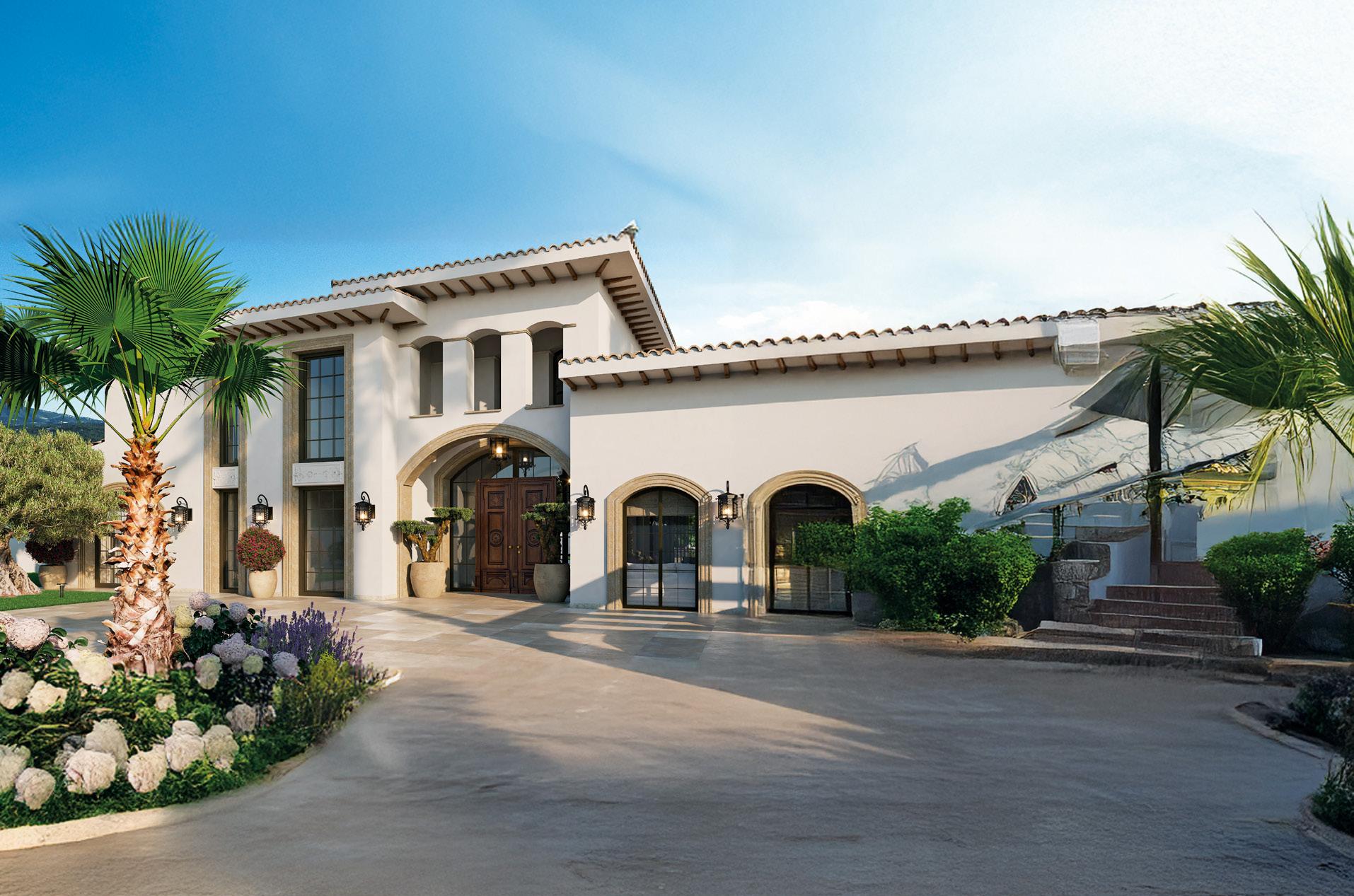 It reinterprets American colonial charm and timeless Mediterranean elegance, featuring generous volumes, traditional roof tiles, exposed wood beams, expansive glazing and double-height ceilings that flood the interiors with natural light. Four suites, a spa, gym and garage complete this exceptional residence.