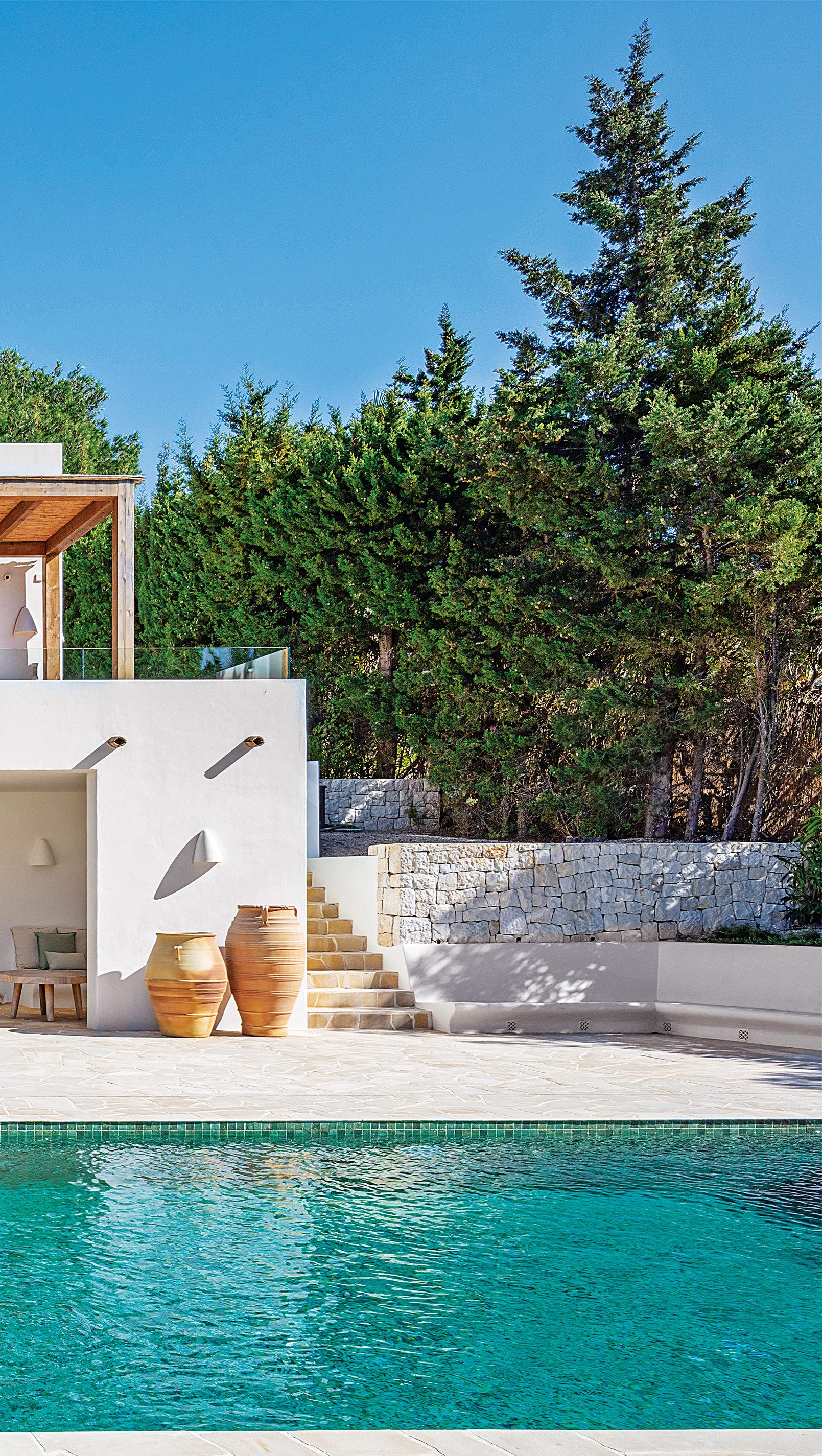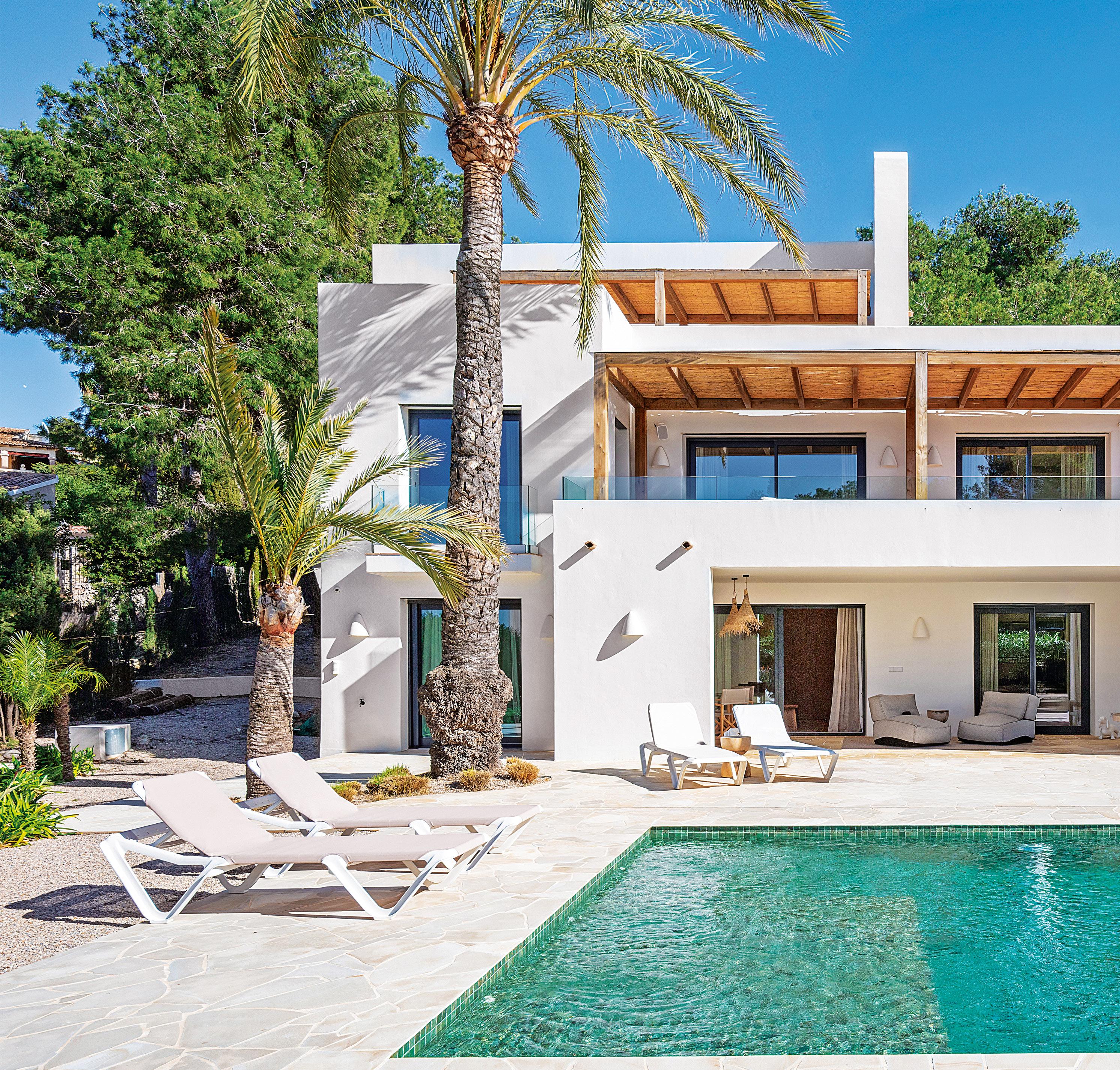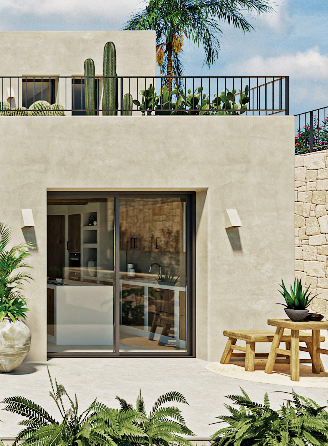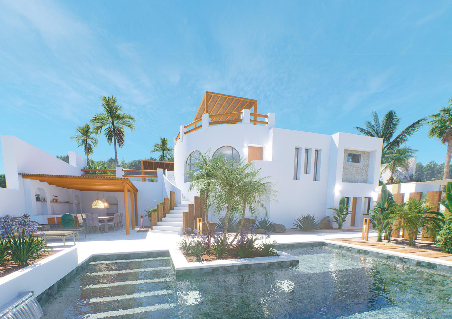 Ubicada en una amplia parcela de 1.732 m² en ladera, la casa combina la elegancia ibicenca con la arquitectura contemporánea. Con 380 m² de superficie habitable, la villa está diseñada para disfrutar de la privacidad, las vistas abiertas y un entorno natural tranquilo, donde la piedra natural y las líneas limpias se integran con naturalidad en el paisaje.