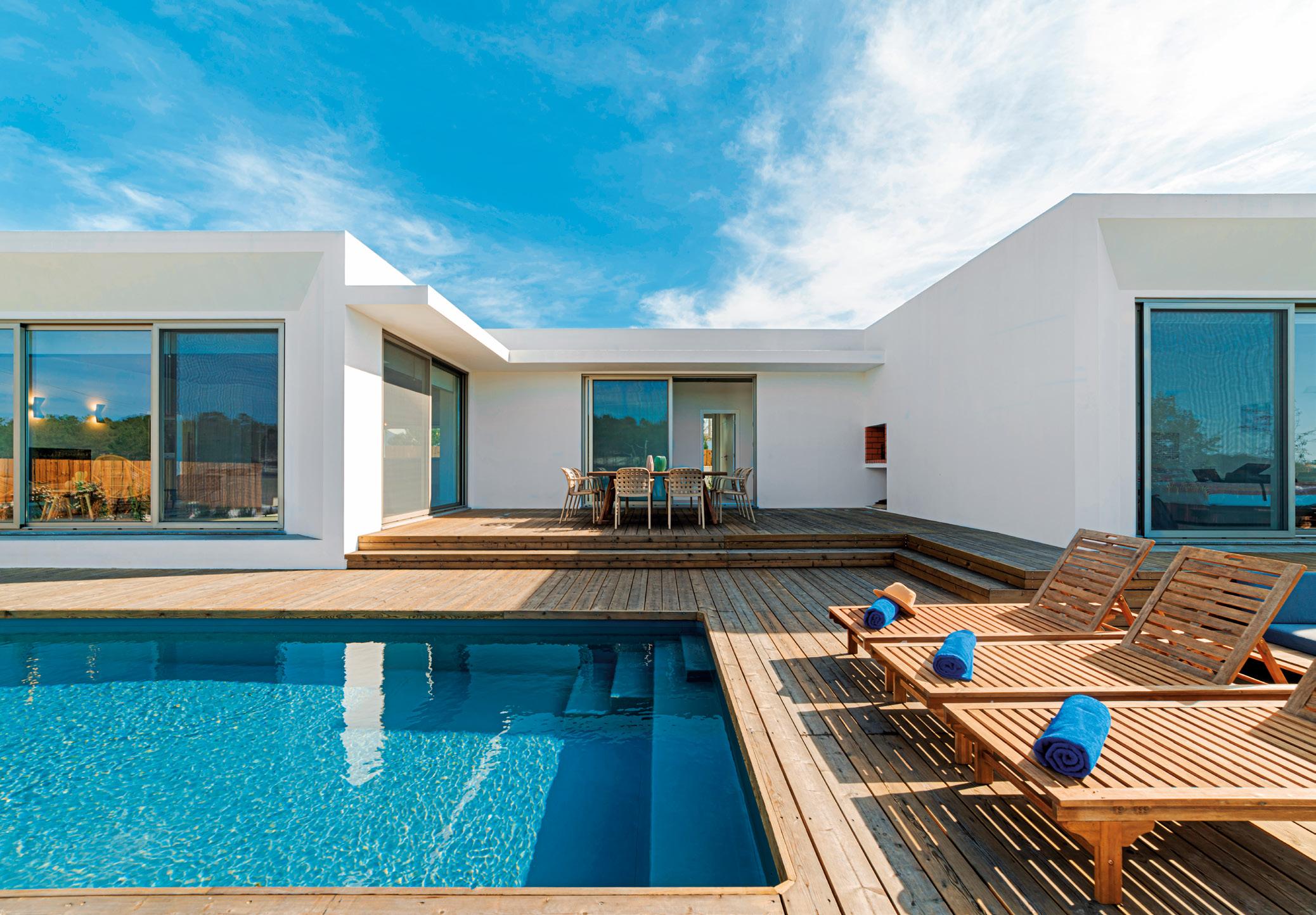 Reinterpreta el encanto colonial americano y la elegancia mediterránea atemporal, con volúmenes, teja tradicional, madera vista, grandes cristaleras y doble altura inundan los espacios de luz. Cuatro suites, spa, gimnasio y garaje completan la villa.