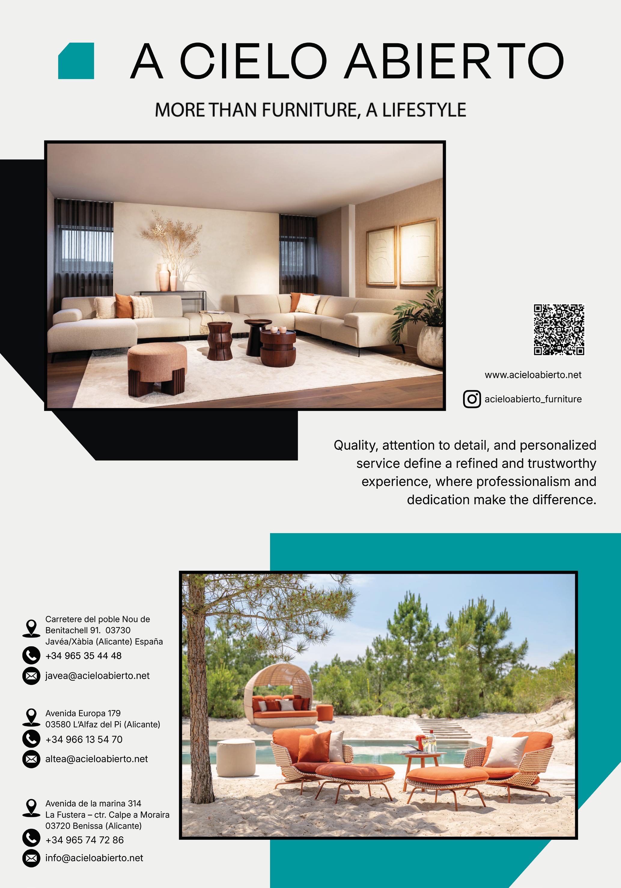 Class & Villas is present in the most prestigious Hotels, Restaurants, Boutiques, Yacht Clubs, Golf Clubs, Tennis Clubs, Professional Offices, Hospitals, Private Clinics, and in the best establishments on the Costa Blanca. Available for sale in Valencia and Alicante, in its most prestigious airports and areas. And On-Line on international platforms: Issuu, Zinio and Magzter.
