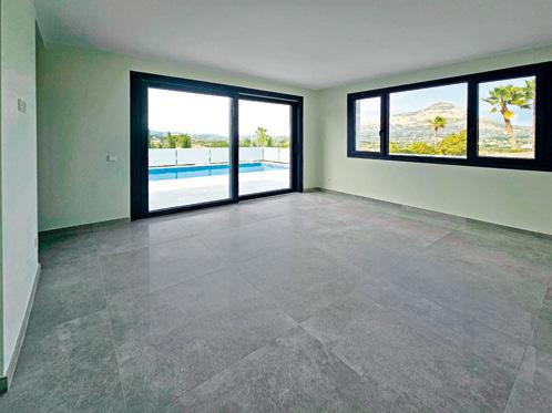 Newly built villa in a very quiet, private and close to the beach. 3 bedrooms, 2 bathrooms, underfloor heating, AC, pool, covered parking. Views of the valley and Montgó mountain.